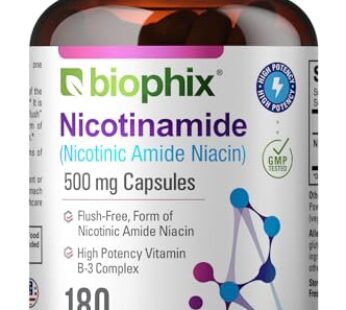 biophix B-3 Nicotinamide 500 mg 180 Caps – Nicotinic Amide Niacin Natural Flush-Free Vitamin Formula – Supports Skin Cell Health