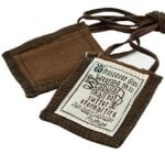 Made from 100% wool, with embroidered pictures and strong cords. Includes a Blessed Crucifix, St. Benedict Medal, and enrollment forms.