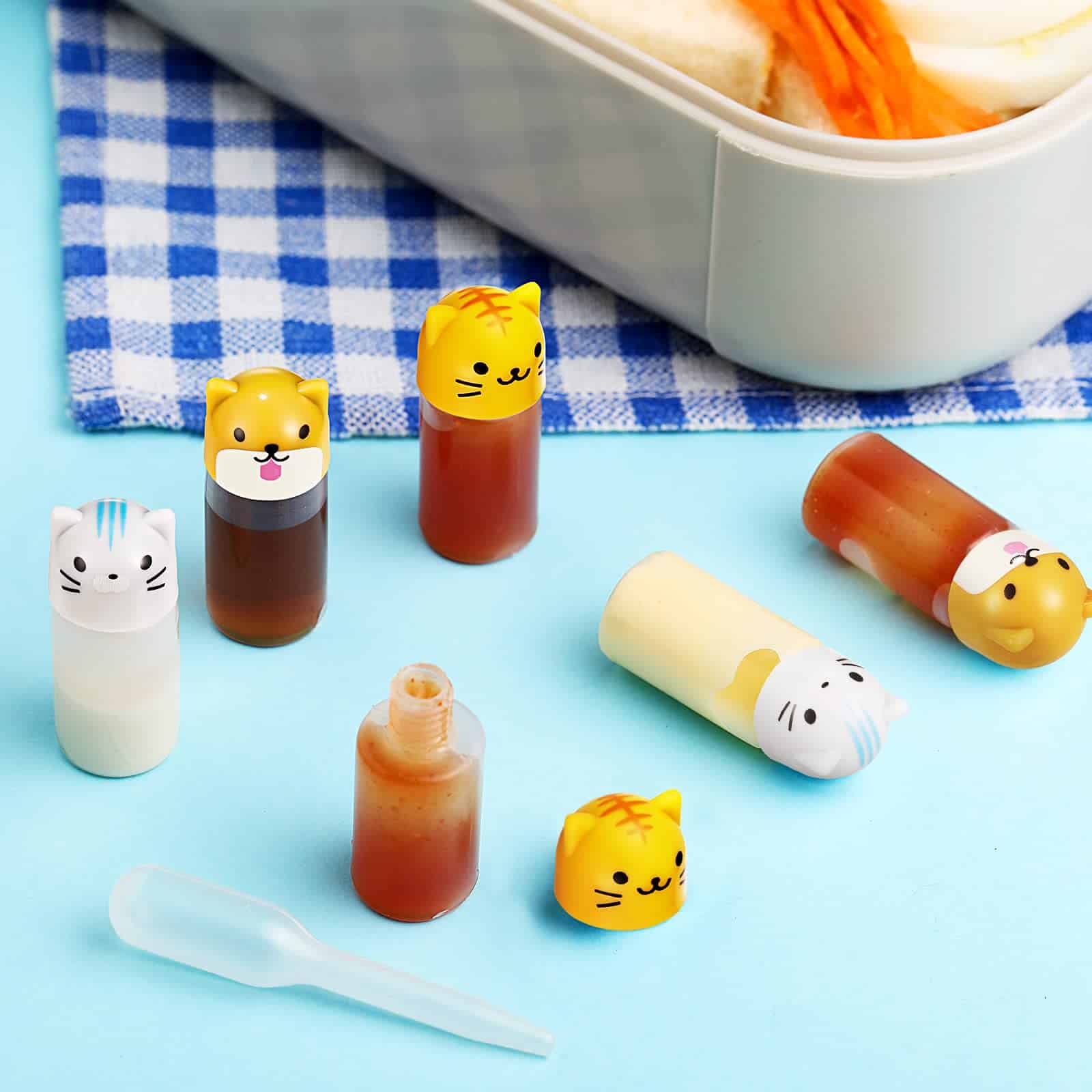 • Cute set: 9 sauce containers for lunch box and 3 dropper in the package,sauce containers have 3 different designs,the cute mini container makes it easy to use at home, office, school or park, which will add color and fun to your child’s lunch, so that your child can enjoy your carefully prepared food