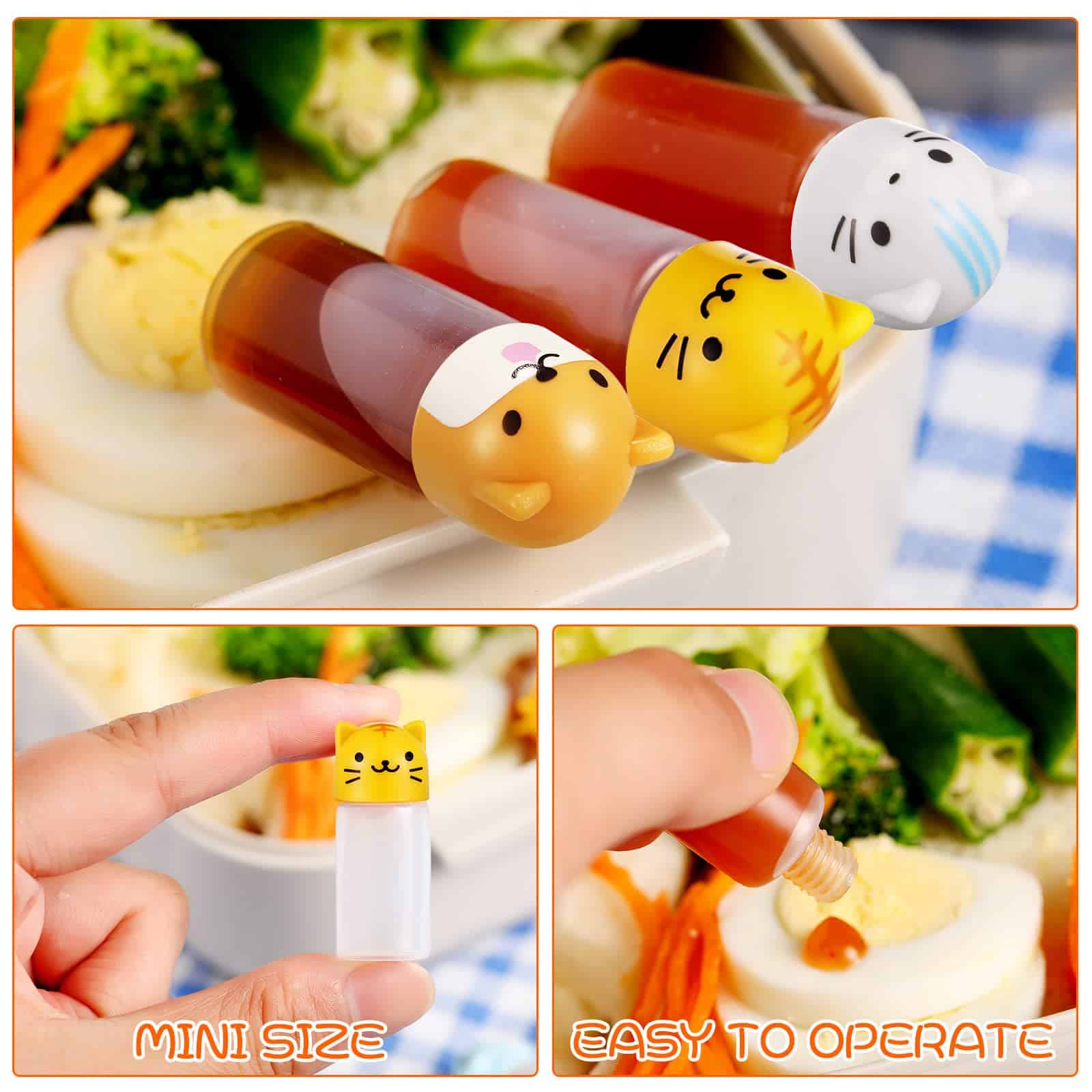 • Wide use: mini condiment bottles can be applied in kitchens, barbecues, camping, parties and gatherings, they can be applied for holding barbecue sauce, olive oil, ketchup, mustard, mayonnaise, chili sauce, maple syrup, salad dressing, ranch dressing, honey, etc.; Different animal styles are convenient for you to classify and daily using