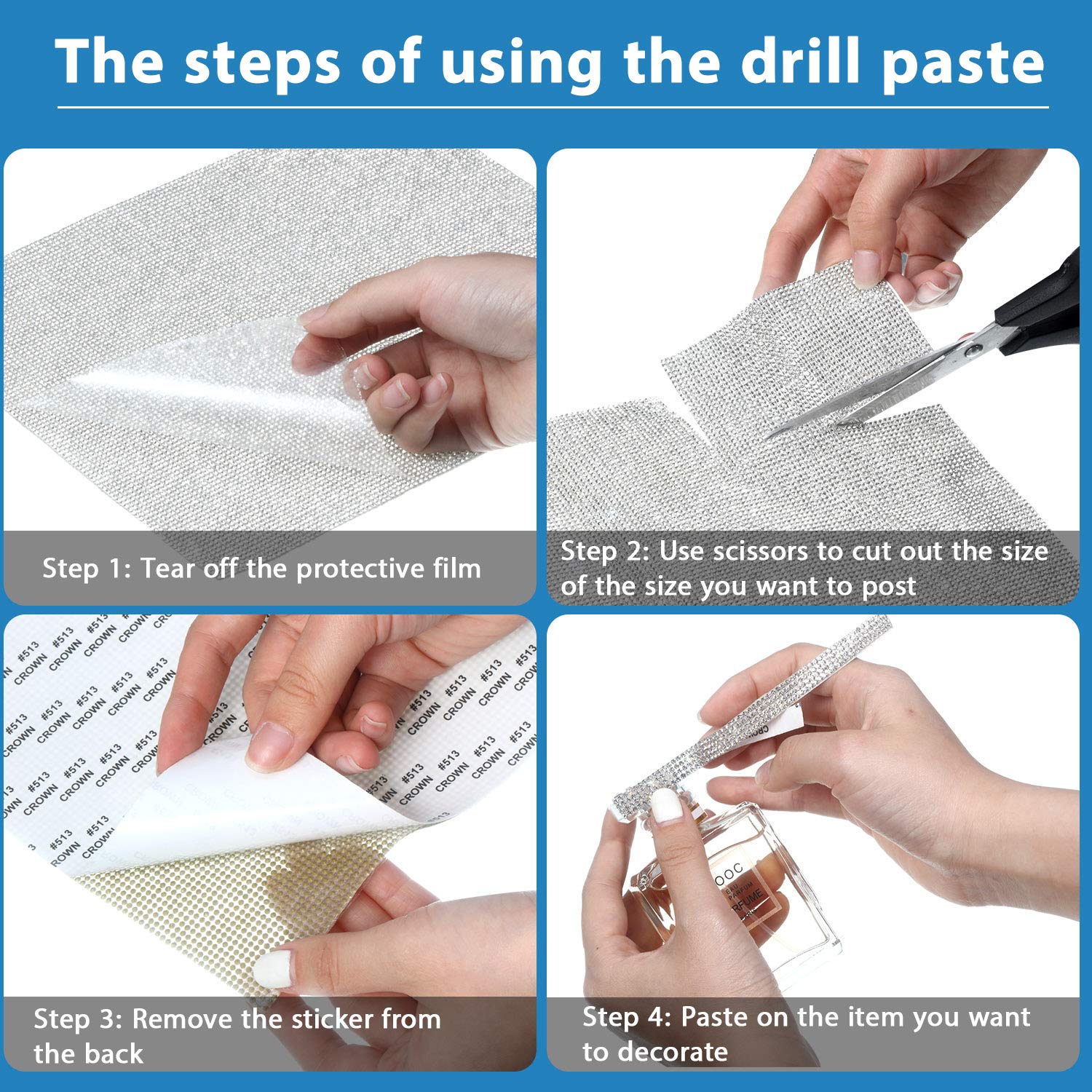 - Easy to use: according to your needs can be cut out any shape you want, cut the appropriate size, remove the bling gem rhinestone sticker from the back, place it on the smooth surface you want to decorate, and press ( don’t go near the water for 48 hours after pasting), convenient for your hand-made crafts