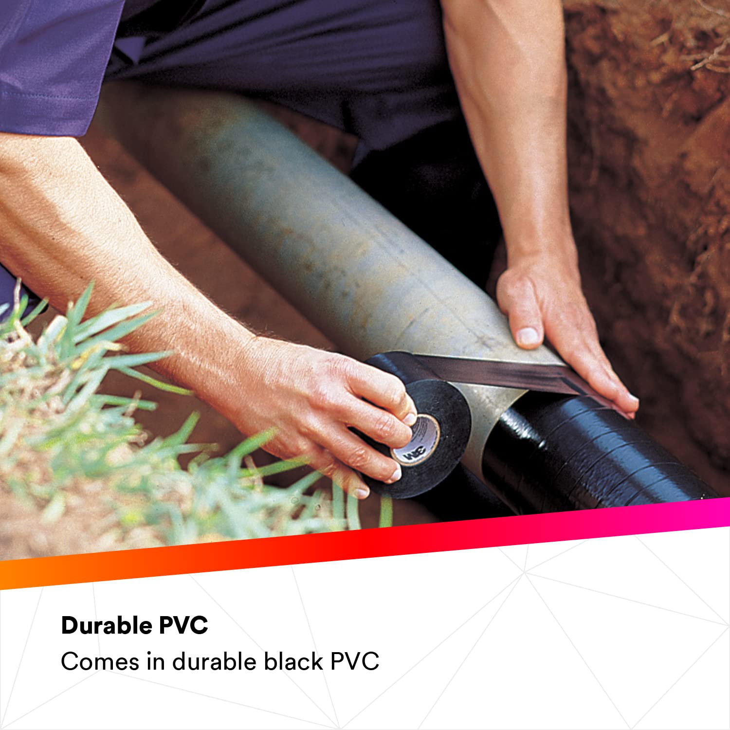 3M Scotchrap Vinyl Corrosion Protection Tape 50 is tough, polyvinyl chloride-based tape that is easy to use and doesn’t require special tools to apply. The tape is made with special high-tack adhesives formulated to resist corrosion of metal piping systems above and below ground, fittings and joints on mill-coated pipe, and electrical conduit systems. The pressure-sensitive rubber adhesive provides excellent tacking for a bond that lasts. This durable, black PVC tape is a conformable, 10 mil (0.254 mm) thick tape with electrical insulating properties. The tape performs well in many industrial uses, including commercial construction, industrial construction, irrigation, maintenance and repair operations, mining, residential construction, solar, utility, and wind power. For easy application during every electrical maintenance job, choose 3M Scotchrap Vinyl Corrosion Protection Tape 50.