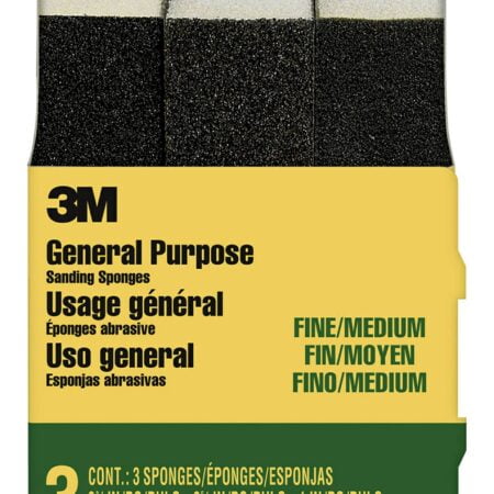 3M Sanding Sponges are designed for sanding wood, paint, metal, plastic or drywall. This sponge features conventional 3M abrasives and is made with durable, flexible foam. The block shape makes it easy to hold and sands flat, contoured, or irregular surfaces. Sanding is an integral step in preparing a surface to receive a coating. For the best sanding results, sand with the grain of the surface and work through a sequence of grits, from coarse to very fine, skipping no more than one grit between each sanding step.From the Manufacturer3M Sanding Sponge 908NA-3P-CC, 3 3/4-Inch x 2 5/8-Inch x 1-Inch (9,522 cm x 6,66 cm x 2,54 cm) Fine/Medium, 3pk, Open Stock. 3M Small Area Sanding Sponge is for either dry or wet sanding. Ideal for sanding wood, paint, metal, plastic and drywall. Two sanding grades on one sponge-Inch a combination of extra fine/fine, fine/medium, or medium/coarse. Rinse and reuse.