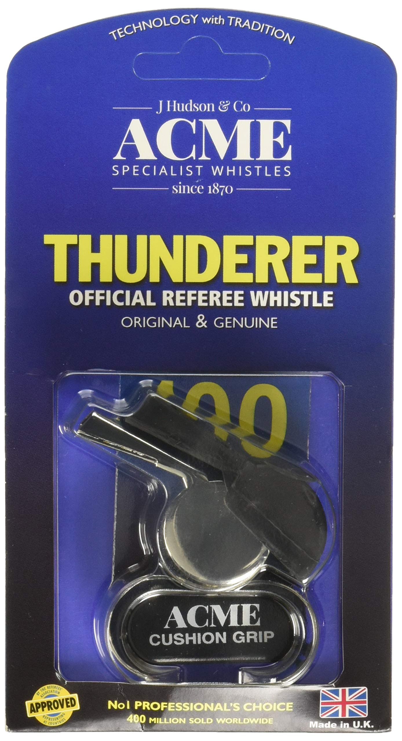 ACME Thunderer Finger Grip Metal Whistle Nickel-Plated (477/58.5) Large Original Authentic Finger Grip with Removable Gator Grip black cap and Cushion Grip Unequaled Performance, Waterproof Speed Pea, Easy Blow- Instant Response, Lead Free Large, Tapered Mouth, deep tone