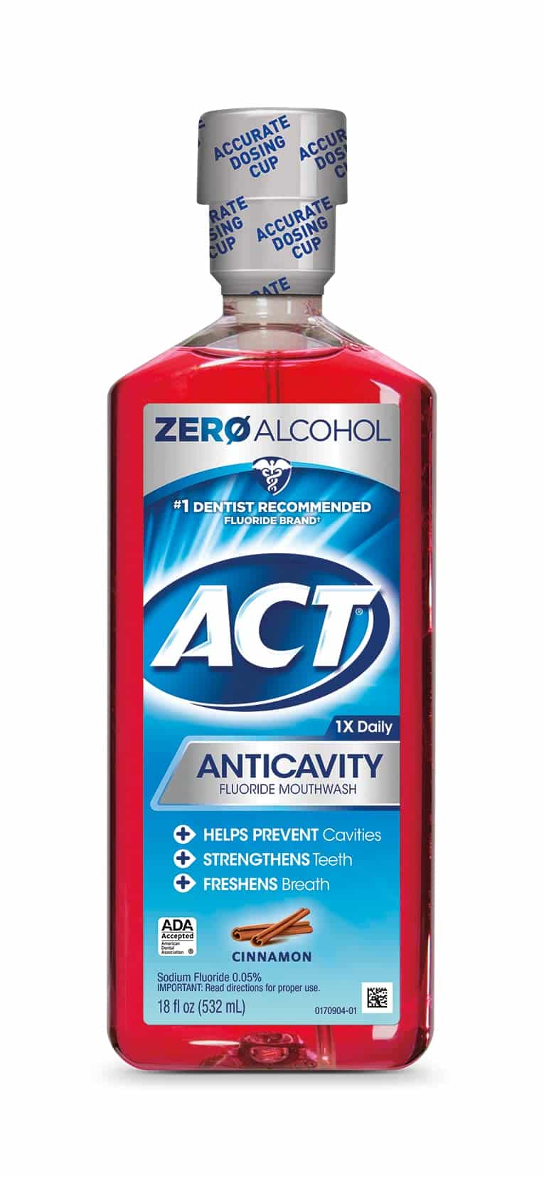 Act Cinnamon Anticavity Fluoride Mouthwash.#1 dentist recommended fluoride brand. Anticavity fluoride mouthwash. Helps prevent cavities. Strengthens teeth. Freshens breath. ADA accepted. American Dental Association. Alcohol free. Sodium fluoride 0.05%.