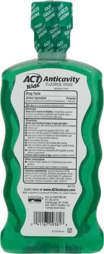 - Contains one (1) 16.9 fluid ounce bottle of ACT Kids Alcohol-free Anticavity Fluoride Rinse With Accurate Dosing Cup Wild Watermelon Flavor