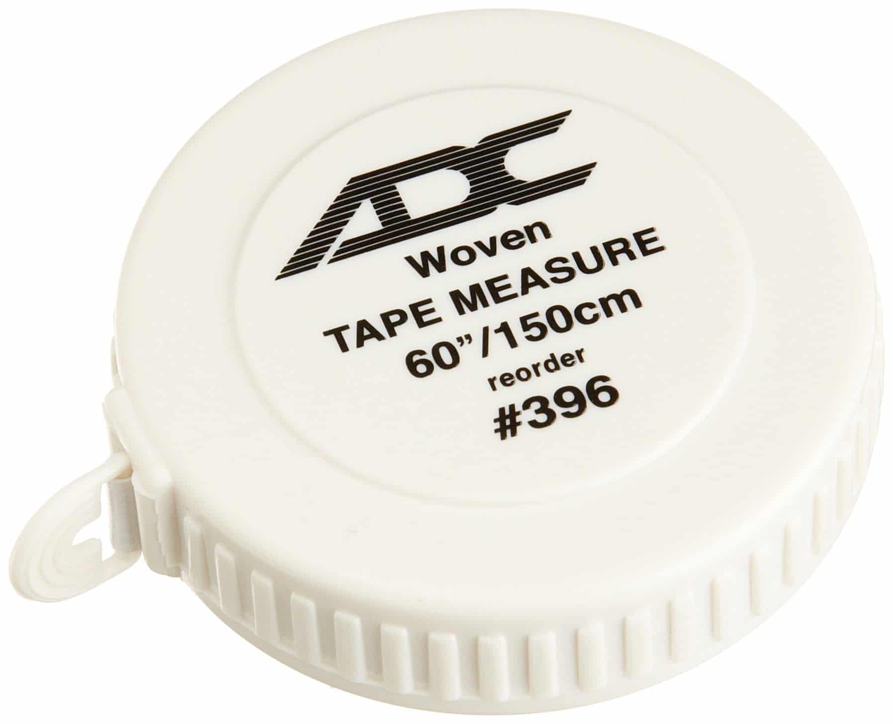The ADC Ad396 woven tape measure features tape enclosed in compact container. Measures in inches and centimeters (60inches/150cm). push button in back to rewind tape.