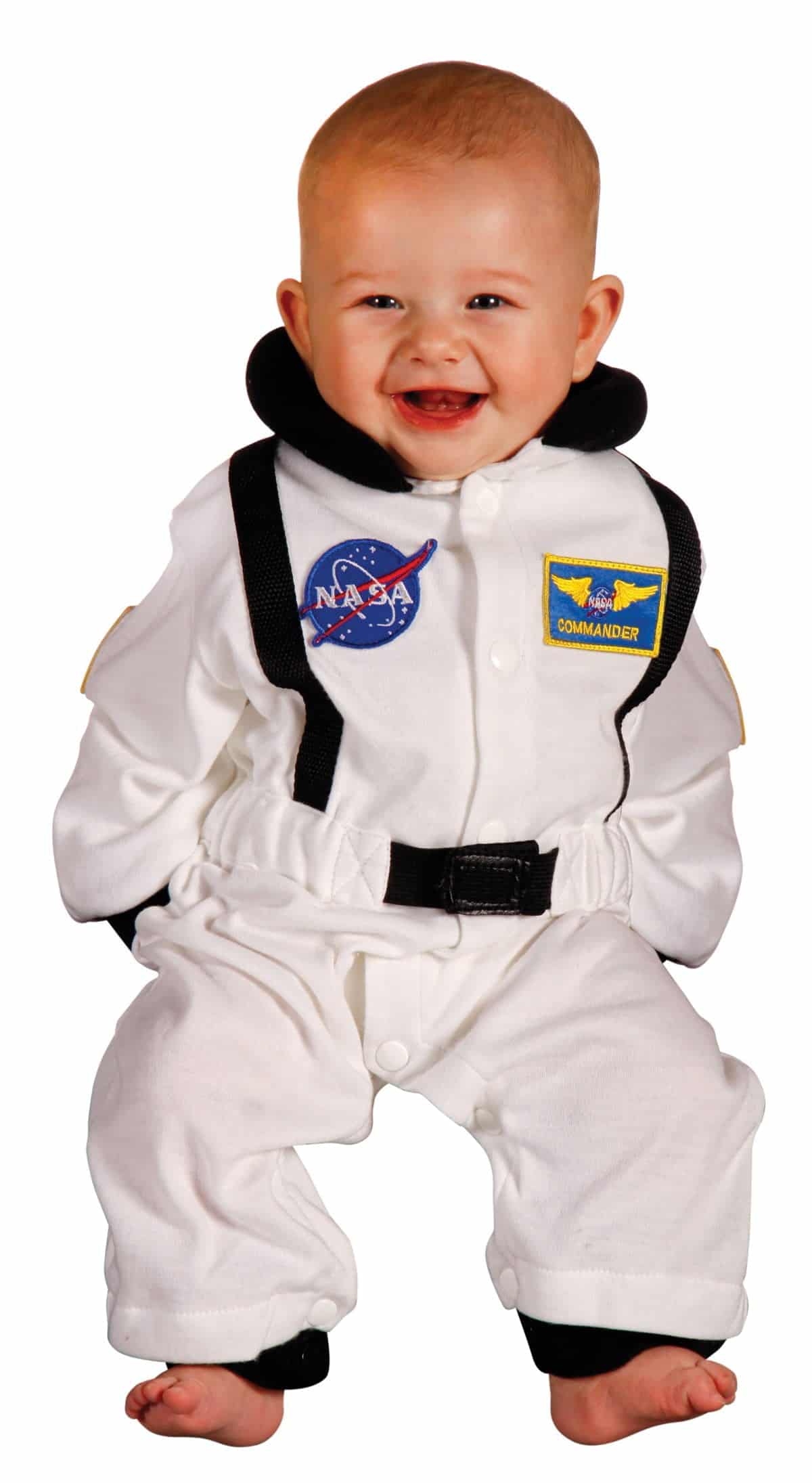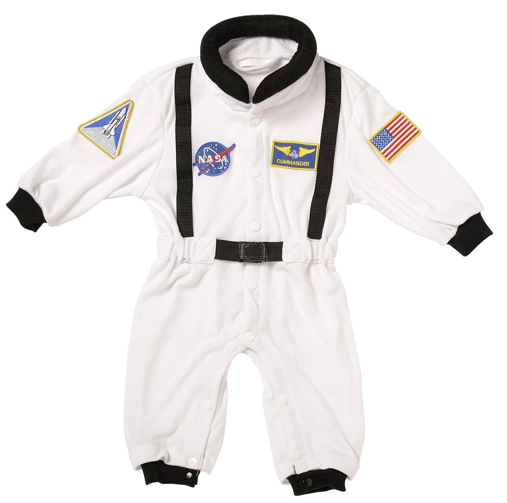 Aeromax Jr. Astronaut Suit with NASA patches and diaper snaps, WHITE, Size 6/12 Months (AS