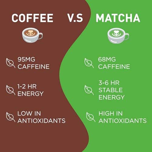 - HEALTH AND WELLNESS BENEFITS: Matcha is rich in antioxidants that support immune health and boost metabolism. A natural source of fiber, protein, calcium, and vitamin C, providing sustained energy for 3 to 6 hours. Enjoy a natural caffeine boost that differs from coffee, providing alertness without the jitters.