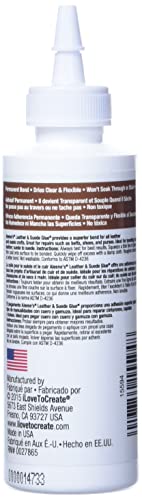 Aleene?s Leather & Suede Glue is your go-to glue for embellishing leather and suede projects! This nontoxic fast-tacking glue dries clear and flexible, and won?t soak through or stain leathers and suedes. Use it for light repairs or adding embellishments such as fringes, beadwork, and other fabrics to your leather projects. Not intended for heavy duty repairs or areas that endure a lot of wear and tear.