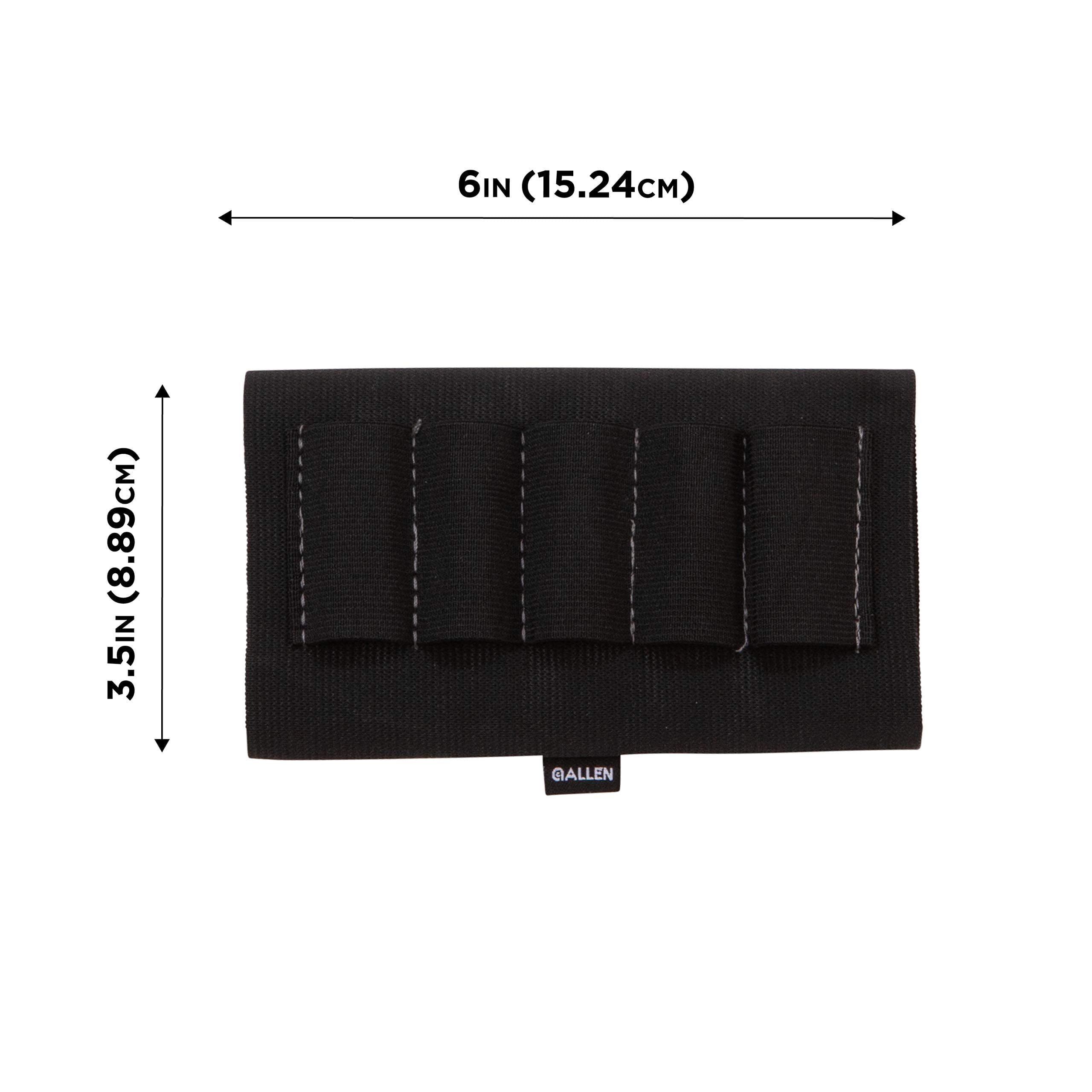 The clever, convenient Allen Company Rifle Buttstock Shell Holder attaches firmly to the butt of any rifle, and holds five shells in an easy-access position. Elastic ammunition loops keep each shell reliably in place, while durable black endura material will hold up to years of heavy outdoor use.