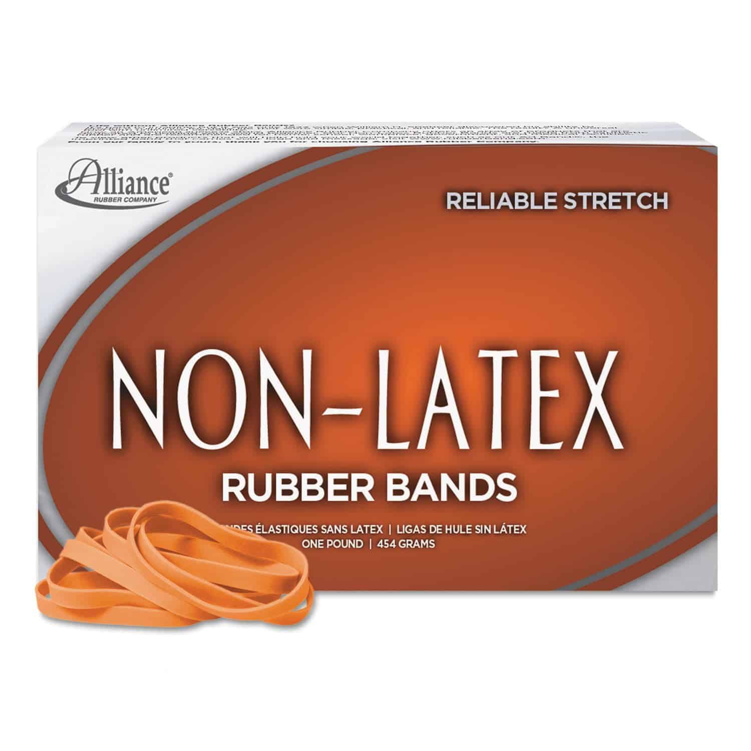 Promote a healthy latex-free environment at work or at home with Alliance Non-Latex Rubber Bands. Ideal for use by or around those with latex sensitivities, these rubber bands are made from a synthetic rubber compound that helps to prevent triggering latex allergy reactions. The bright orange color of these non-latex bands makes them easy to distinguish from regular bands. The soft stretch of the elastics is easy on your wrists to prevent the symptoms of carpal tunnel syndrome when doing repetitive actions, particularly in an office environment. The high rubber content makes these rubber bands strong and durable so that they can be re-used many times.