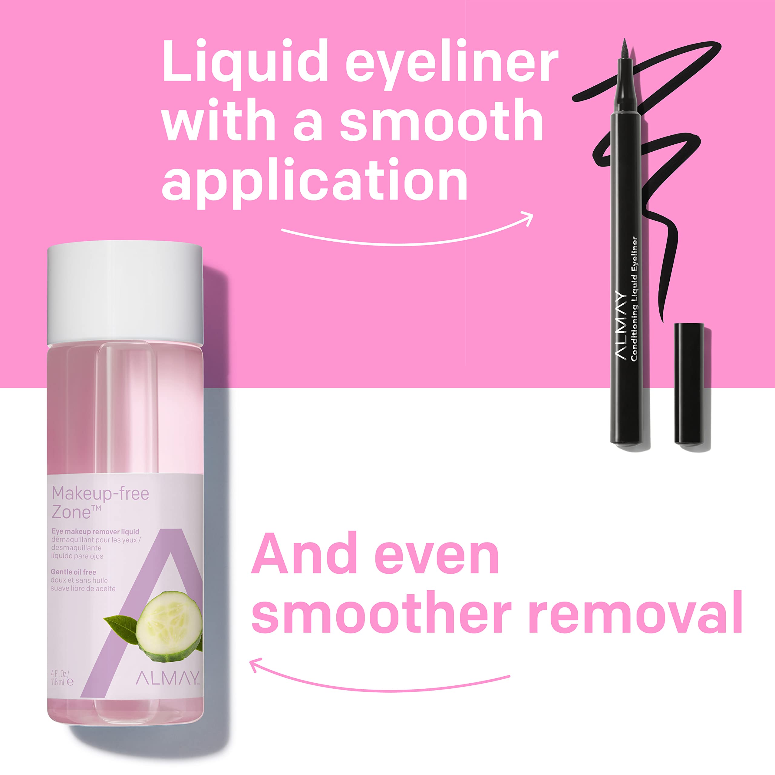 Almay Oil Free Makeup Liquid Remover is a gentle, oil free liquid that removes all traces of makeup that soap and water can leave behind with a botanical blend of aloe, cucumber and green tea. It sweeps away makeup without irritation. Like everything we make, this makeup remover is clean. We’re super selective about every ingredient we use, and work with top experts to be sure our products love your skin and eyes. As always, ophthalmologist tested, dermatologist tested, hypoallergenic, fragrance free, clean, and cruelty free