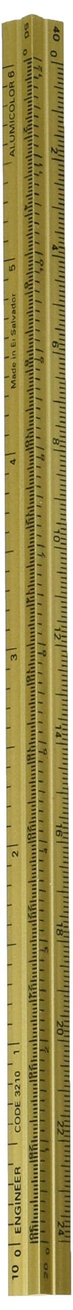 Lightweight, professional-quality scales are made from color-anodized aluminum with printed graduations on ultra-smooth, mark-resistant surface. 6″ solid core engineer scale in gold color. Supplied in hard plastic case.