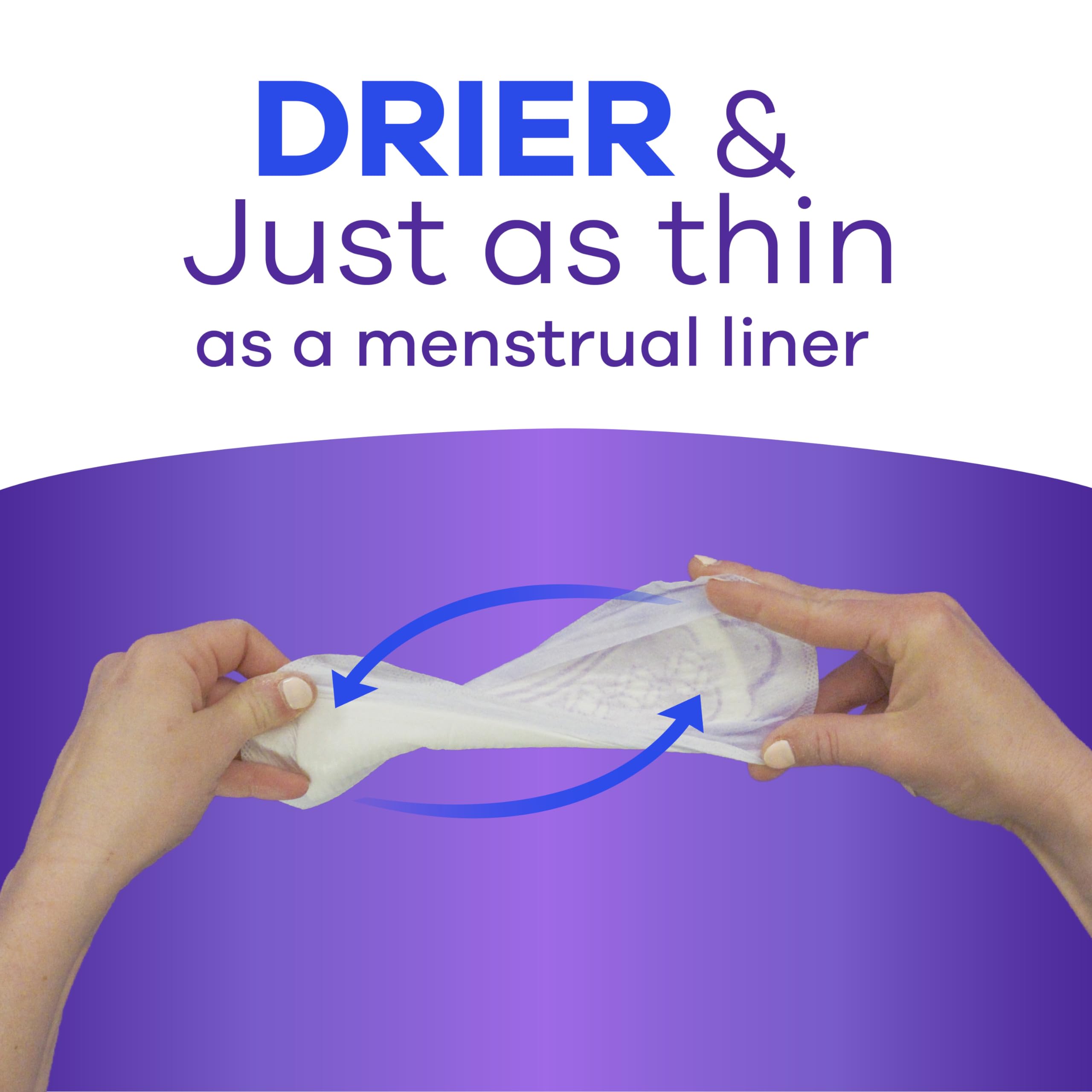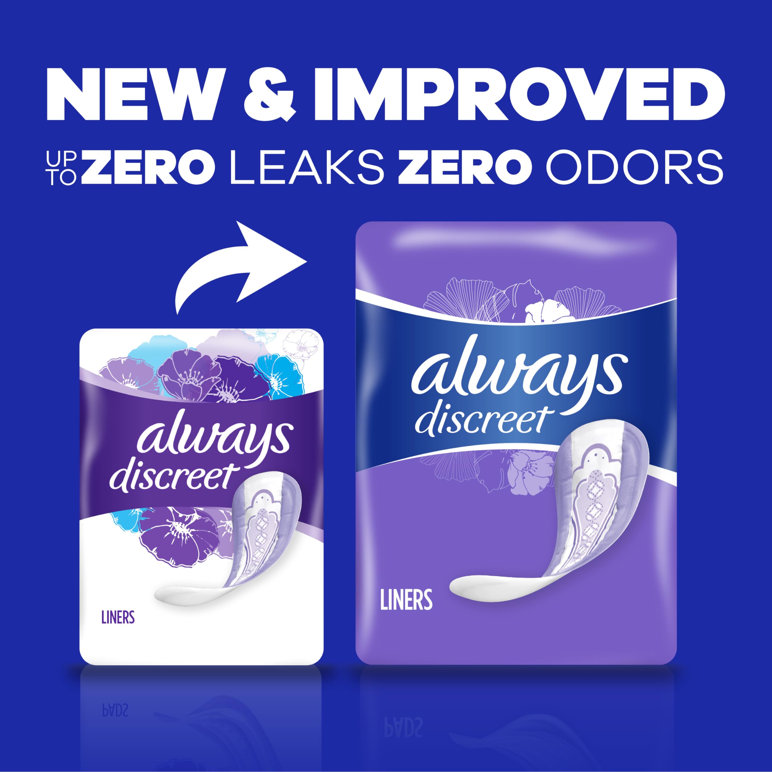 Bladder leaks shouldn’t hold you back. With Always Discreet, they don’t have to. Start living life uninhibited by a weak bladder and urinary incontinence with protection you can count on and feel comfortable wearing. Always Discreet Liners for incontinence are designed to fit your body and your lifestyle, with a slim profile you can barely even feel! And since these revolutionary panty liners stay comfortably in place and fit discreetly under your clothing, you can walk with poise and confidence every day. Now made with an improved end-to-end core for better overactive bladder protection and all-day comfort (when compared to previous Always Discreet products), incontinence liners with our layered RapidDry core turn liquid into gel to lock leaks away and keep you dry. Side LeakGuards help keep wetness from reaching the edges to avoid messes, so you can leave any worries of adult incontinence behind. Find Always Discreet incontinence liners for women in the size and absorbency level that’s right for your needs. If sneezing or laughing causes bladder leaks, Always Discreet Very Light Liners offer the ideal amount of protection. If you feel like you may need more coverage, look for liners with a longer length and greater absorbency. And remember that adult incontinence products from Always are HSA/FSA eligible, so check with your provider for plan coverage.