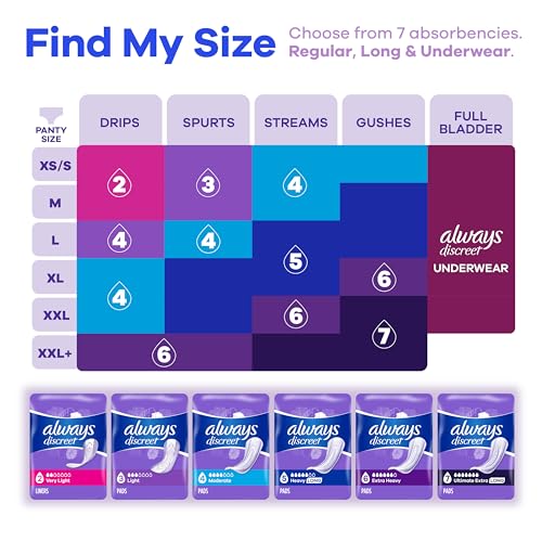 • Find the right size pad or pantiliner for you using the Always Discreet My Fit size chart