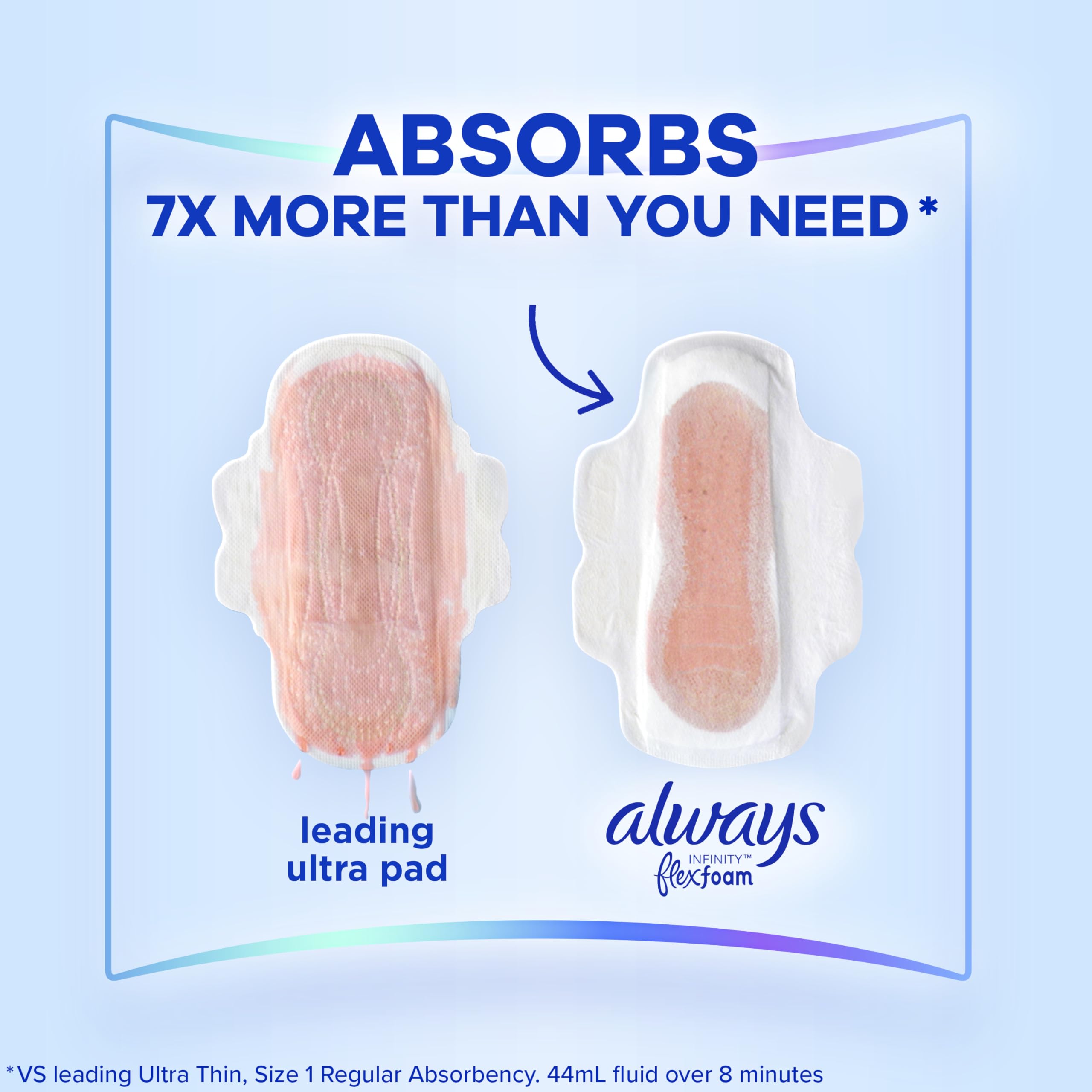 - Zero Leaks and Zero Feel is possible with Always Infinity FlexFoam Regular Absorbency period pads