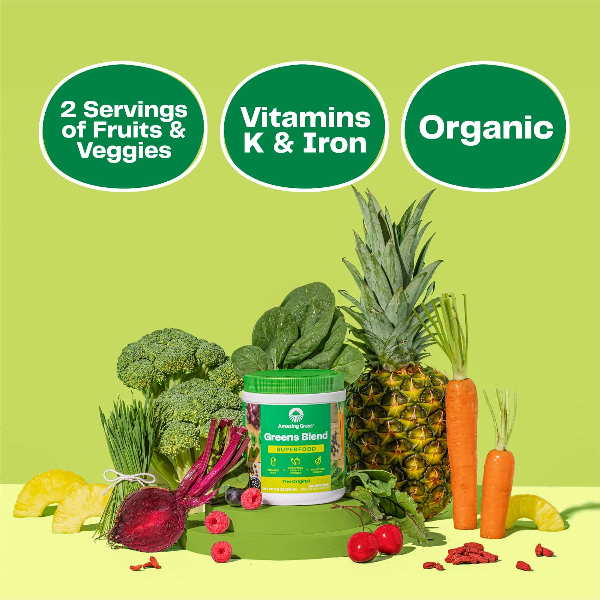 - SUPPORTS IMMUNITY AND GUT HEALTH: Packed with 2 full servings of wholesome fruits, vegetables, vitamins & minerals in every scoop, our Greens Blend ensures you are getting the right amount of nutrients to support overall health and immunity.