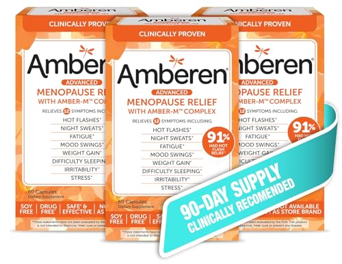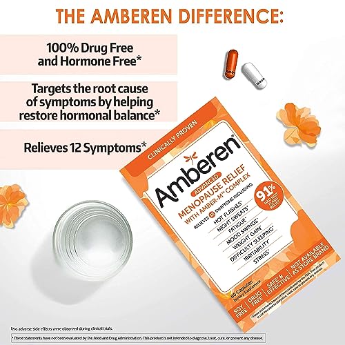 - AMBEREN MENOPAUSE SUPPLEMENT SAFELY RELIEVES UP TO 12 MENOPAUSE SYMPTOMS: hot flashes, night sweats, mood swings, low energy, weight gain, stress, irritability, joint aches, sleeplessness, headaches and more.