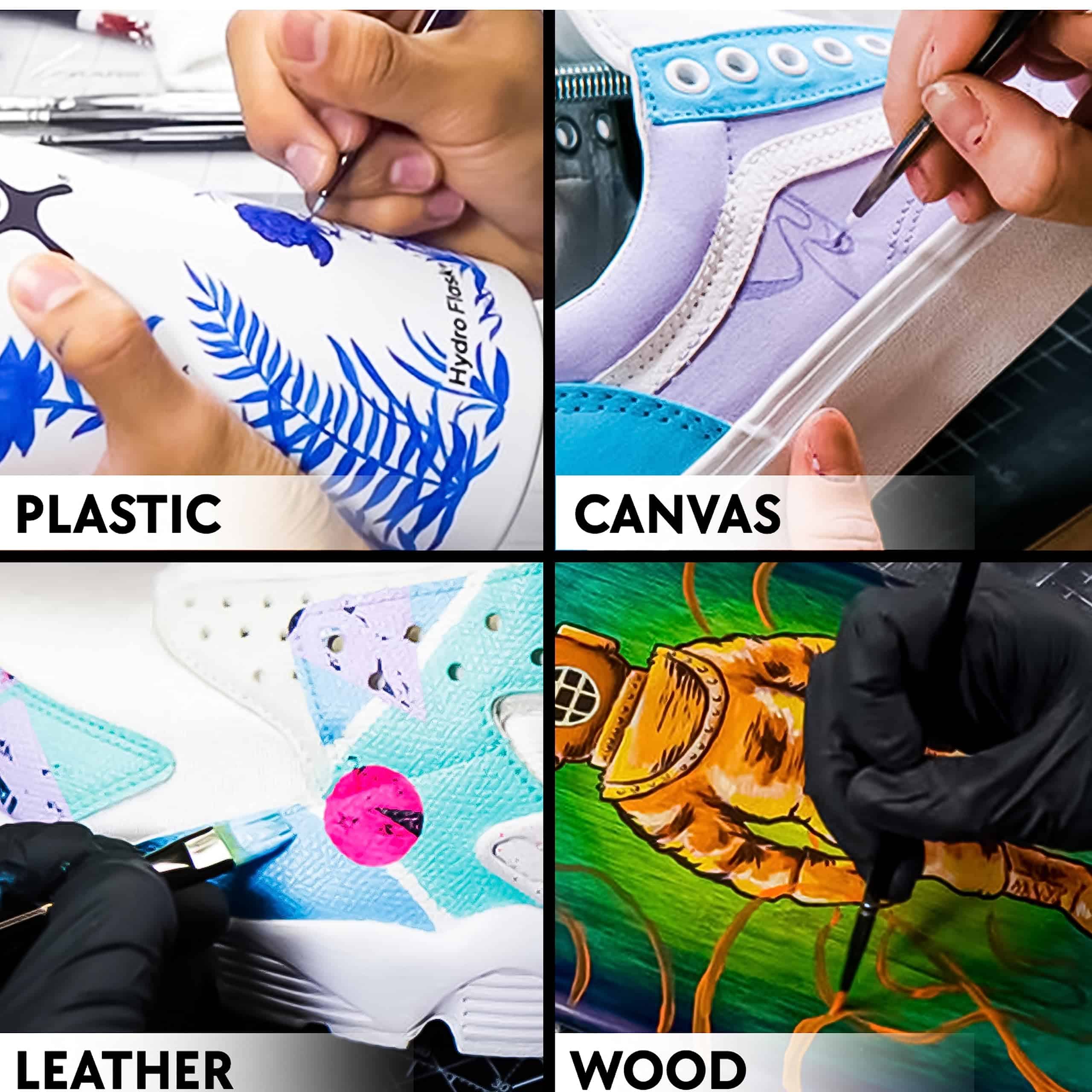 - Brilliant paints perfect for decorating and staining smooth leather, vinyl or anything permeable