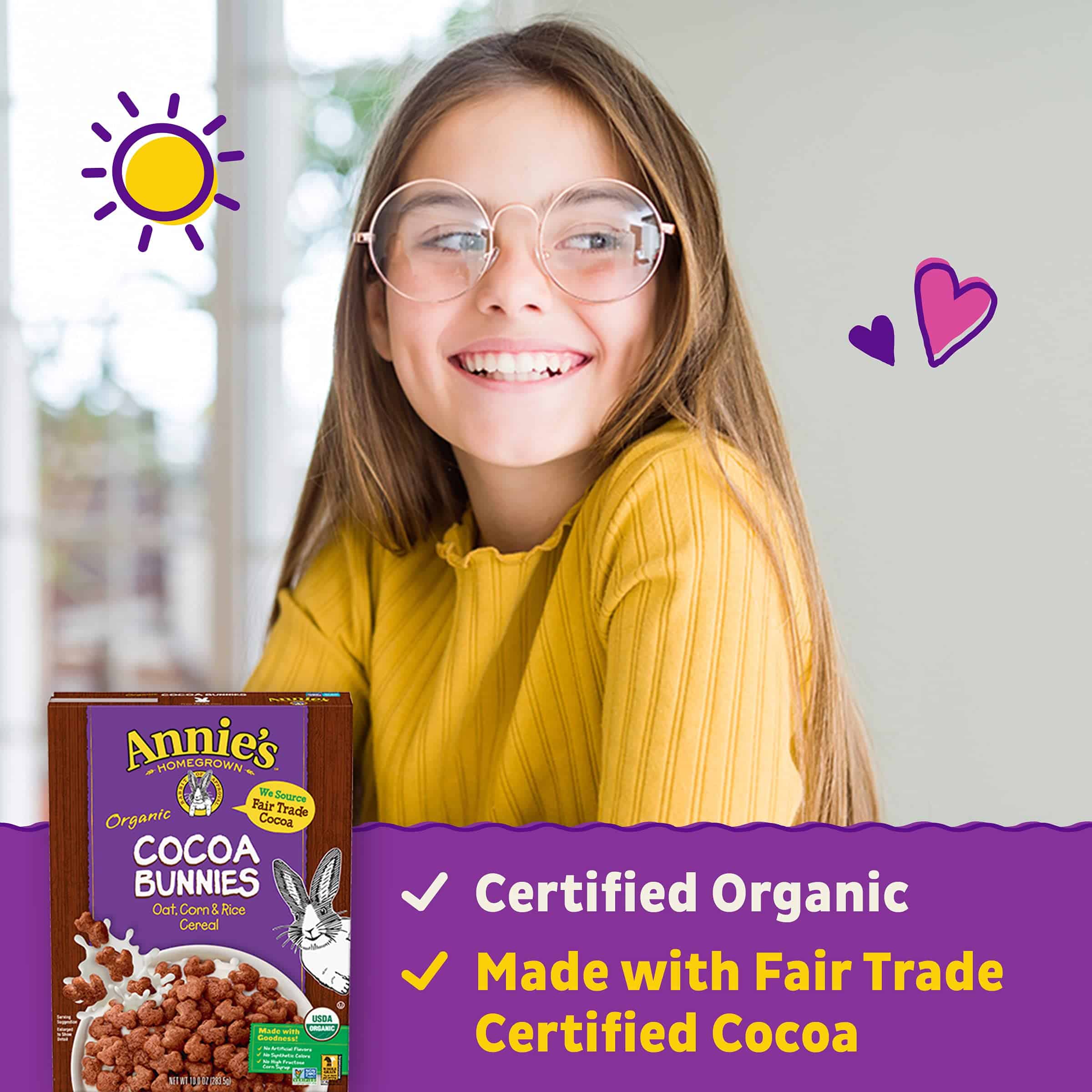 - CRUNCHY COCOA: We source organic Fair Trade Certified cocoa for our bunnies cereal