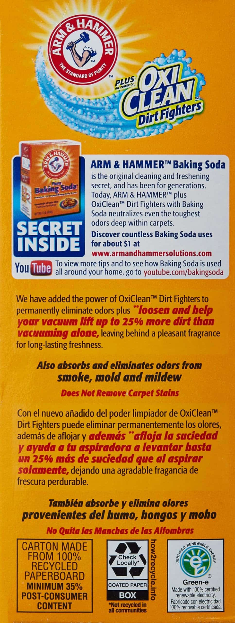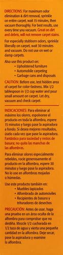 Loosens and help your vacuum lift up to 25% more dirt than vacuuming alone. Also absorbs and eliminates odors from smoke, mold and mildew.