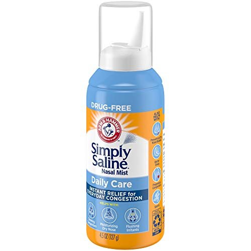 Simply saline nasal spray helps deliver instant congestion relief by flushing out irritants. It’s adaptable nozzle and gentle mist make it easy to use. Plus, Simply Saline is always safe to pair with your cold or allergy medicine because it’s drug free, preservative free, steroid free, and non-addictive. In fact, it’s made from three simple ingredients: water, salt, and ARM & HAMMER Baking Soda.