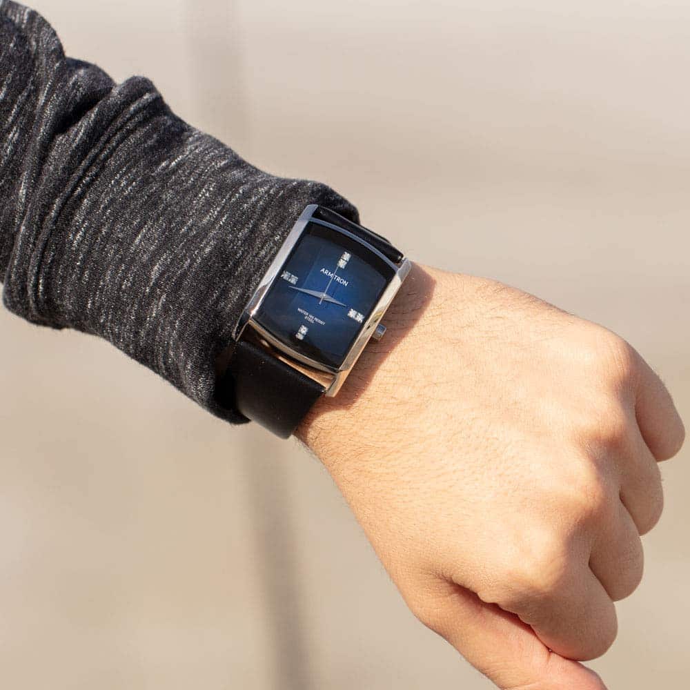 Original price was: ₹2,466.₹1,827Current price is: ₹1,827.Armitron Men’s 204604DBSVBK Dress Genuine Crystal Accented Silver-Tone Black Leather Strap