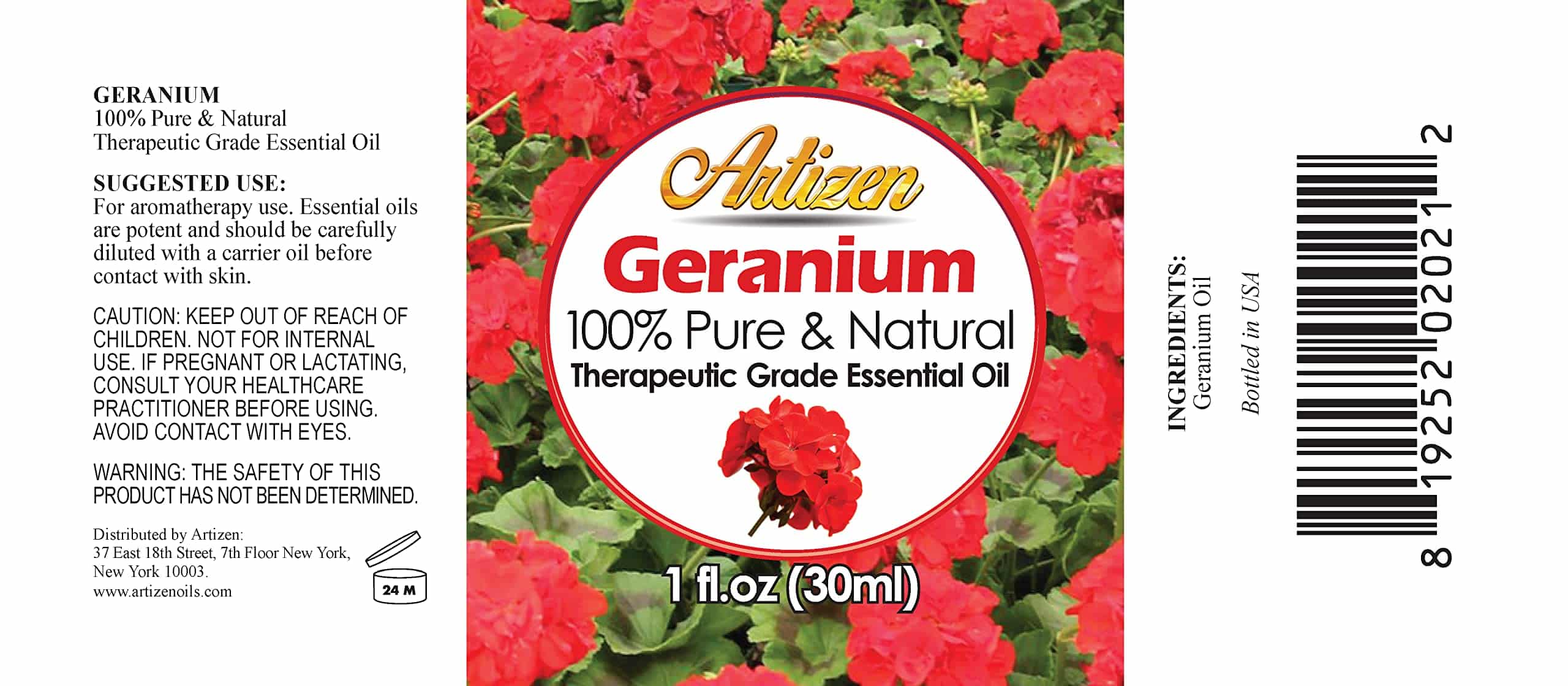 - 100% Pure & Natural Geranium Essential Oil – What sets Artizen Essential Oils apart are their unparalleled purity and concentration. Natural, with no adulterants or dilution, their oils provide the maximum benefit possible and are uncompromising.