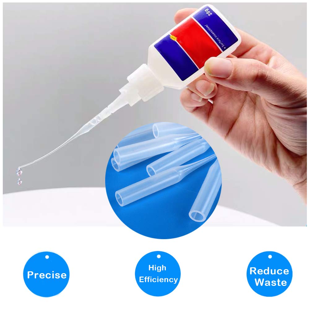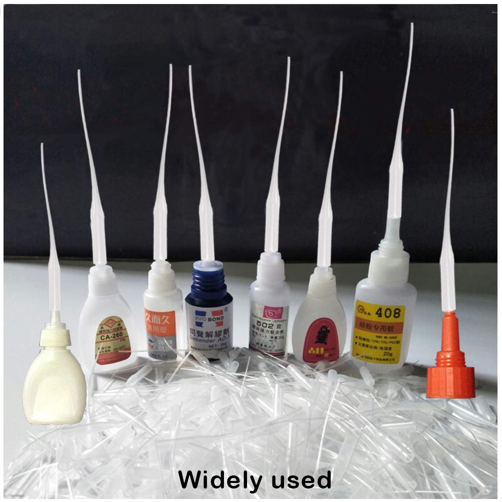 Asonlye Glue Tips, 100Pcs CA Glue Tips, Precision Glue Micro-Tips for Bottles with Nozzle, Use for Hobby for Hobby, Crafting, Lab DispensingAbout the glue micro-tips:Quantity: 100 PcsColor: ClearSize: As shown in the figureMaterial: Low density polyethylene plasticCompatible: Better storage of your glue, suitable for most CA bottles.Package Included:100 x Glue Micro-TipsNote:Low temperature hardens the interface, please use a heat gun or hot water heating interface, it will be easy to connect when heated.