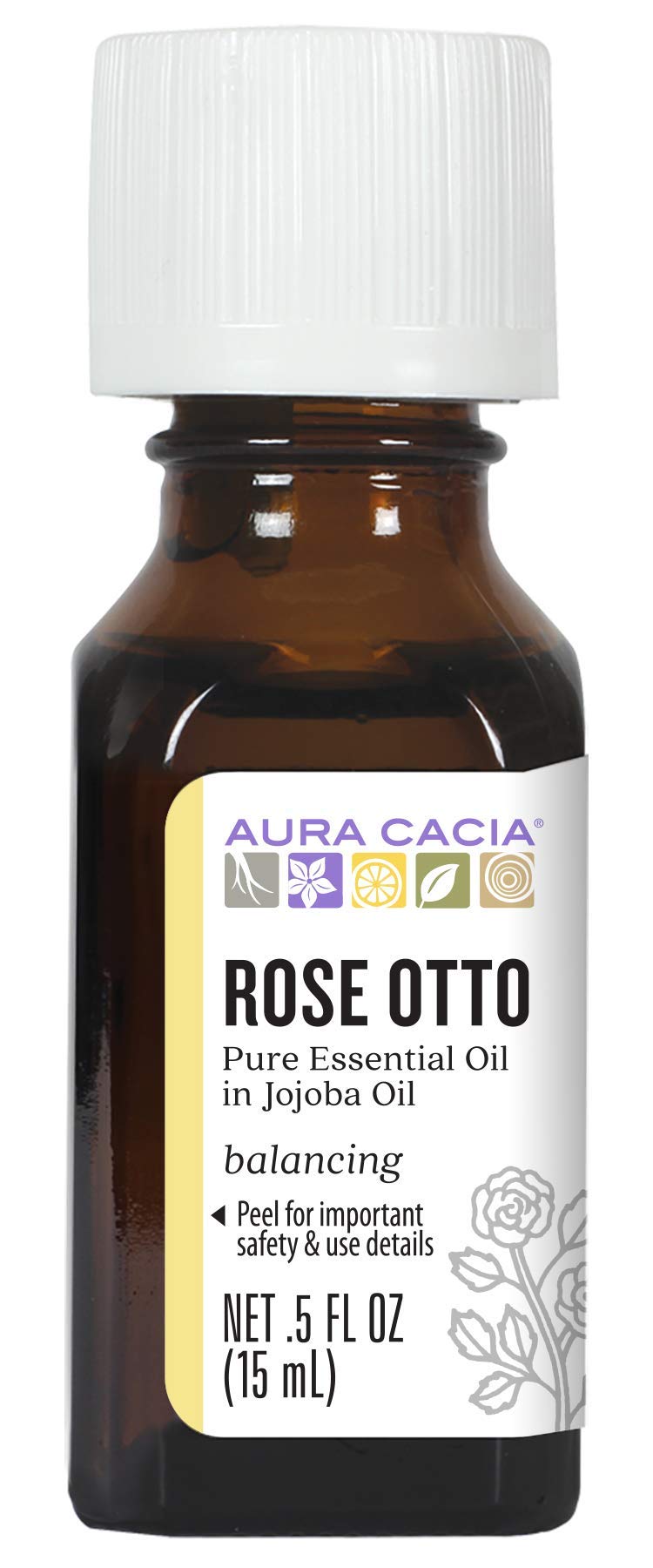 Product Features:- Rose otto essential oil has a joyful, tranquil aroma and excellent skin care benefits, making it great for topical blends and cosmetic applications. A drop or two in a massage, facial or bath oil creates a luxurious, soothing experience.-The potent aroma of rose is associated with many emotional rites and practices – it corresponds with feelings of romance and joy.-Rose blends well with many essential oils, including lavender, helichrysum, neroli, ylang ylang, patchouli, citrus oils, and sandalwood.-The very complex rose essential oil has some top note qualities but is considered a middle to base note.Additional Features:-GC/MS Tested for Purity-No Synthetic Colors or Fragrances-Not tested on Animals-Paraben & Petroleum Free-15ml (0.5 fl. oz.)Ingredients:Simmondsia chinensis (Jojoba) Oil, Rosa damascena (Rose) Oil.Suggested UsesQuick Tip: Diffuse with lavender at night to summon tranquility.Recipe: Argan Rose Facial Oil SerumDescription: A rejuvenating facial oil serum made with argan, rose and lavender tea tree.Ingredients:- 4 drops Aura Cacia Rose Absolute in Jojoba Oil- 1 drop Aura Cacia Lavender Tea Tree Essential Oil- 1 tsp Aura Cacia Argan Oil- 2-oz. Aura Cacia Amber Glass Bottle with Writable LabelDirections:Into bottle, add argan oil and essential oils. Replace lid and shake gently until contents are well blended. To use, after cleansing face, dispense serum into palm of hand and use fingertips to massage into skin on face and neck, avoiding eyes.There are so many ways to use essential oils! The above suggested uses are just an introduction to a wide variety of quick tips and recipes available from Aura Cacia. Because essential oils are highly concentrated, we recommend diluting them in a carrier product like skin care oil, unscented lotion, or unscented liquid soap.