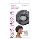 Stay On Satin Edge Bonnet Womens Hair Wrap for Sleeping, Black