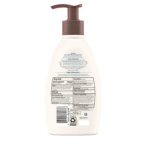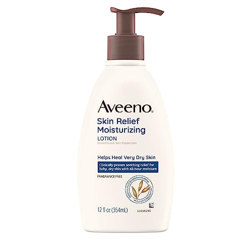 • 12-fluid ounces of Aveeno Skin Relief Fragrance-Free Moisturizing Body Lotion with a soothing triple oat and shea butter formula helps heal very dry skin and provides clinically proven relief for itchy, dry skin with 48-hour moisture