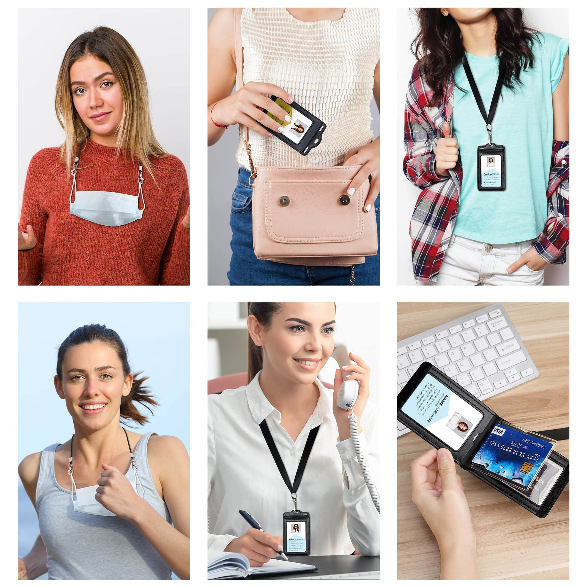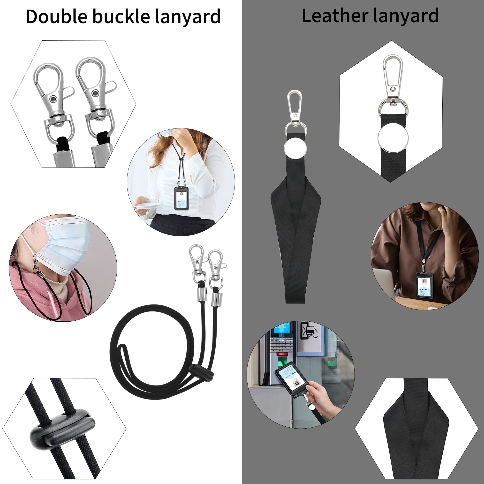 ??Do you often encounter situations where you cannot find your ID card or bank card in your bag immediately???Do you often worry about the inconvenience of ID card or credit card storage???Do you often worry about losing your ID or bank card?If so, our ID cardholder will be your best choice, and it will completely solve your worries. When you need to verify your identity in ??hotels, ?airports, and ??offices, our badge holders will be very convenient, and you can quickly find your ID at any time.Product Detail:????Card slot: 5 clear ID window + 2 detachable neck lanyards. This ID card holder can hold at least 6 cards. The neck straps with a suitable length can meet your different needs and save your time.????Material: leather Why choose this premium leather badge holder ?1?? Reliable quality: This badge holder is made by our own factory. We use durable soft leather and high-quality hardware materials and are carefully hand-made by skilled workers.2?? Simple style design: The design of this badge holder is very simple and can hold ID cards and bank cards. Simple but useful and convenient.3??wide range of uses: This badge holder is suitable for most types of cards, such as ID cards, ??credit cards, driving licenses, membership cards, bus cards, library cards, access control cards, etc.4?? ??To see more fancy badge holders, please search OUESSILA badge holders.5?? ??WE SUPPORT MASS CUSTOMIZATION. If you need more than 200 CUSTOMIZED badge holders, please contact customer service for a consultation! You can print the LOGO you need on the badge holder, such as COMPANY LOGO, CLUB LOGO, SCHOOL LOGO, etc.Thank you very much for purchasing our products, we will provide you with 100% satisfactory service within 24 hours.