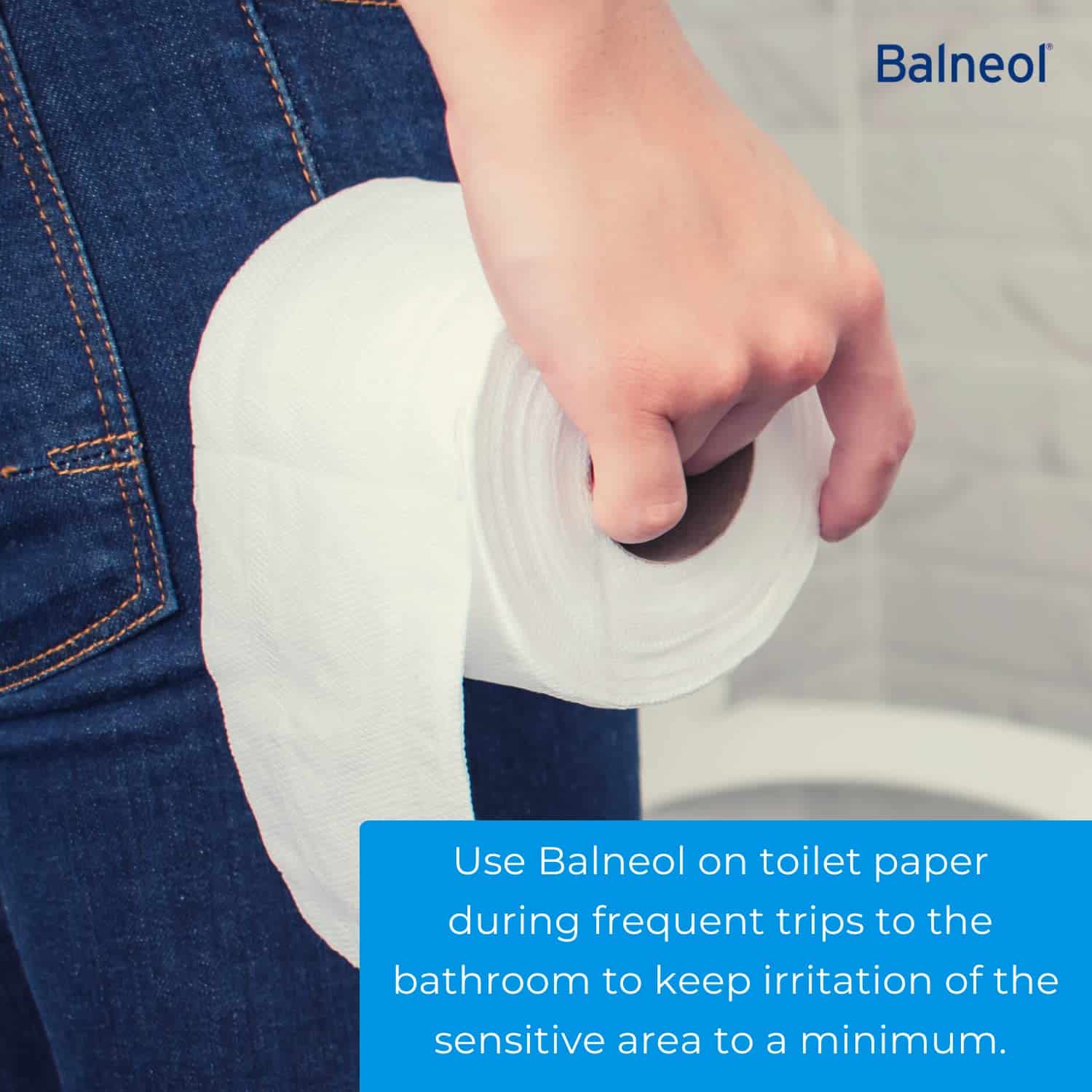 • Non-medicated: BALNEOL does not sting or thin the skin and is safe for use during pregnancy, post-partum, during bouts of diarrhea, or in conjunction with hemorrhoid treatment