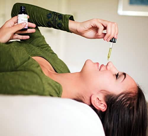 2. Place 3-5 drops of nasya oil in each nostril. With skill, you can administer the oil drop by drop, circling the inside perimeter of the nostril, thoroughly coating the nasal membranes.