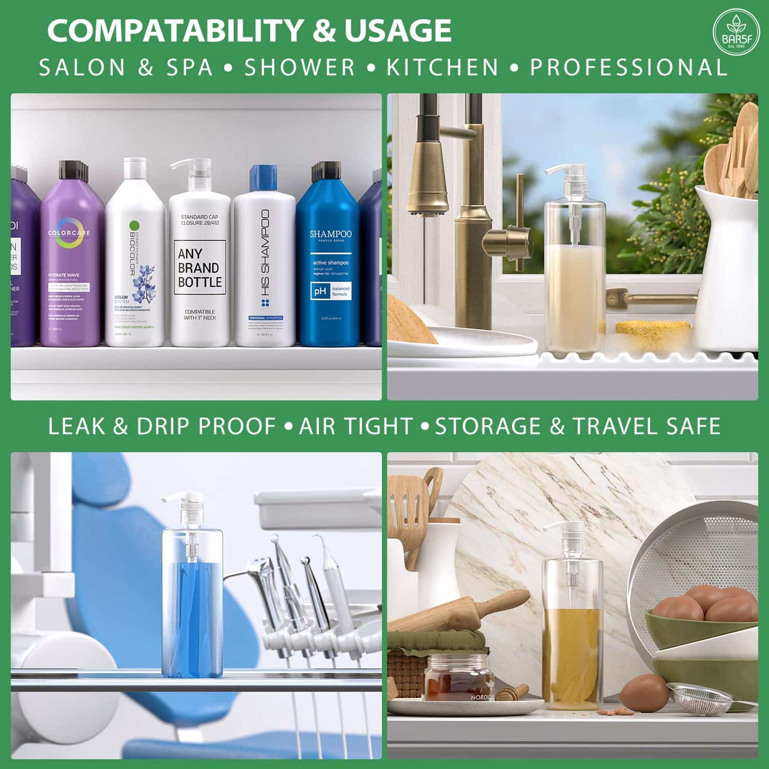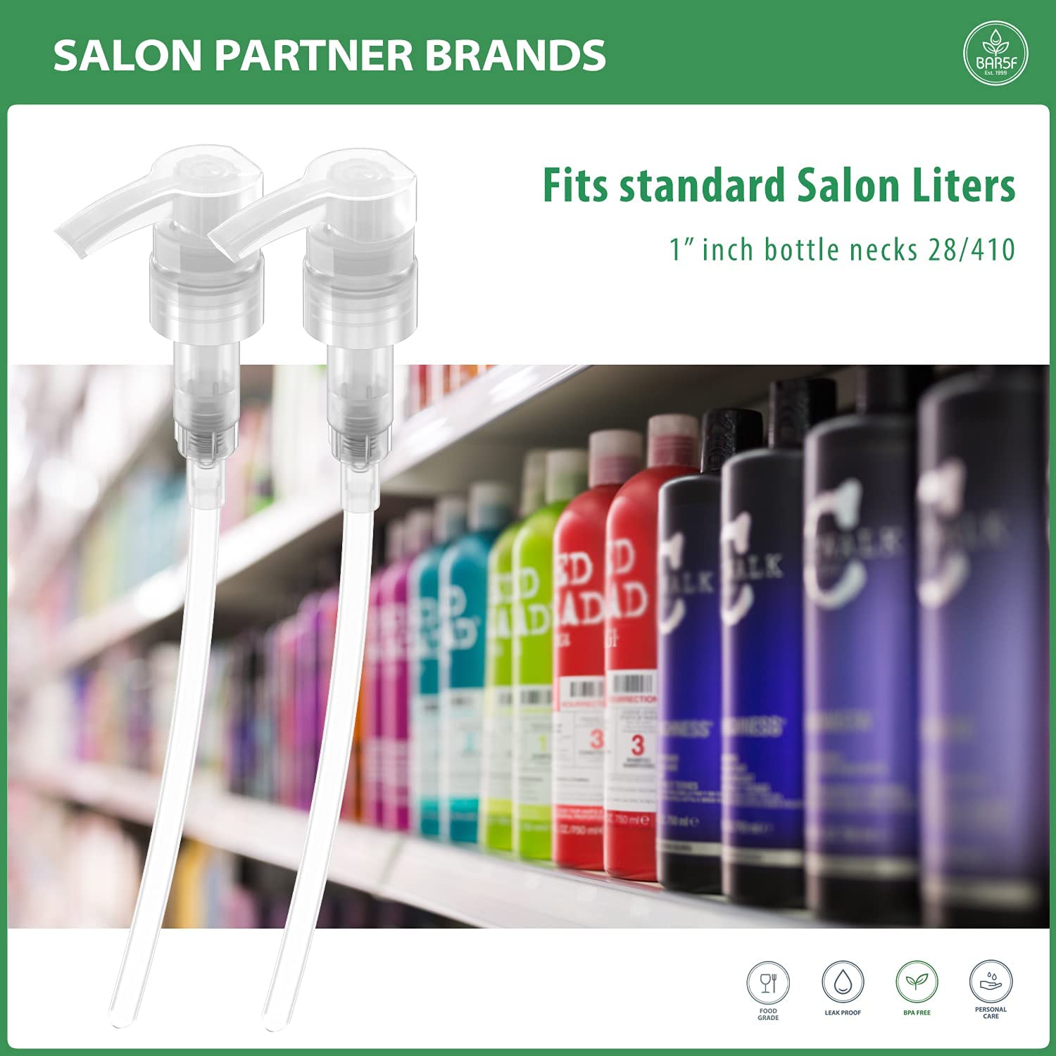 - Pump for 1 liter (33.8 oz) Bottles of Shampoo, Conditioner and Gel
