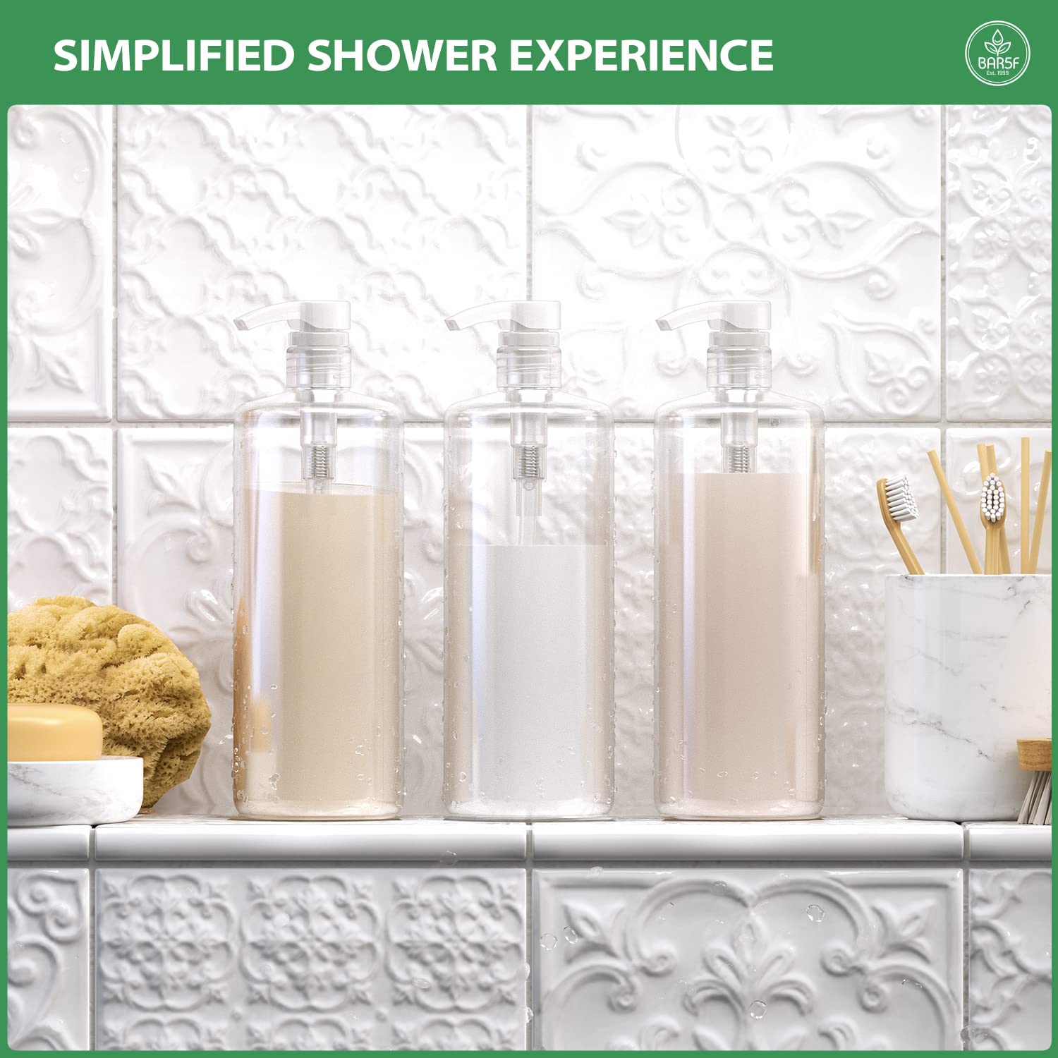Original price was: ₹2,441.₹1,575Current price is: ₹1,575.Bar5F Universal Shampoo/Conditioner Dispenser Pump for 1 Liter (33.8 Oz) Bottles – Natural Clear, Pack of 2