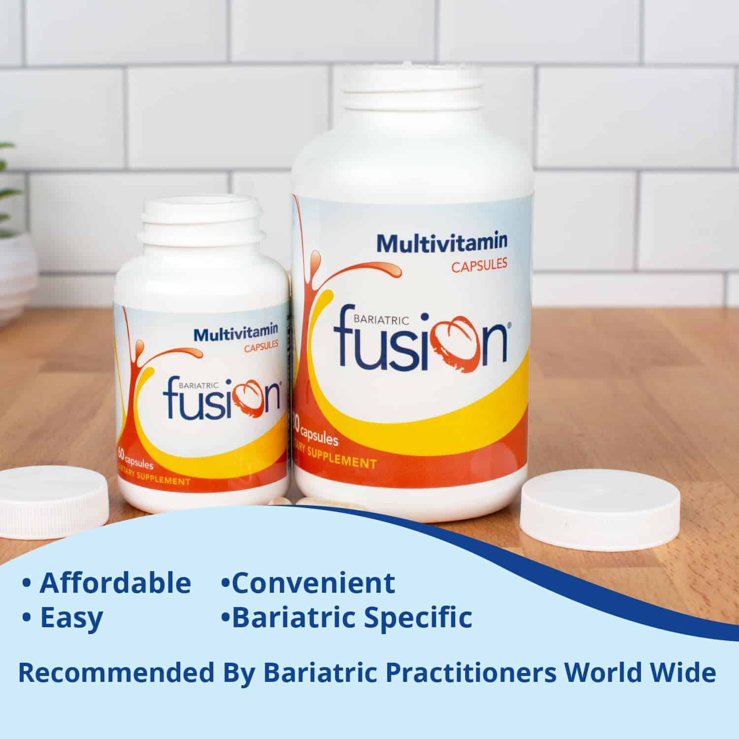 Bariatric Fusion Bariatric Multivitamin Capsules 3 Month Supply are here! Bariatric Fusion Bariatric Multivitamin Capsules are an easy and convenient way to get your daily vitamin needs! This multivitamin was designed and formulated by medical professionals to provide an easy and efficient way to meet the needs of their patients. With just 2 easy-to-swallow capsules a day this unique formula uses the most biologically available bariatric vitamins and minerals to maximize absorption. Bariatric Fusions capsule provides the highest amounts of what the Bariatric Fusion team believes are the key micronutrients vital for weight-loss surgery patients.