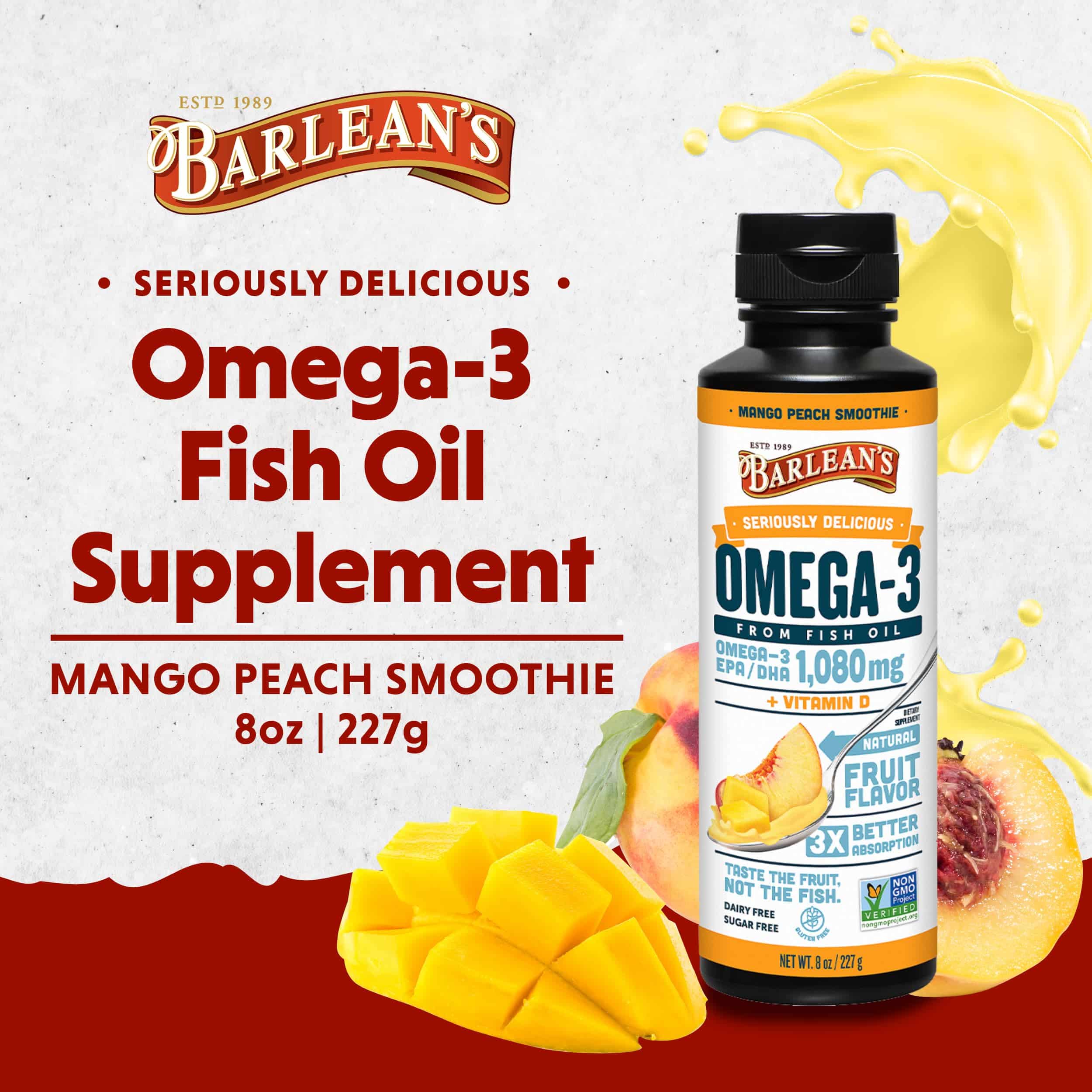 Barlean’s Mango Peach Fish Oil Swirl, 8-Ounce