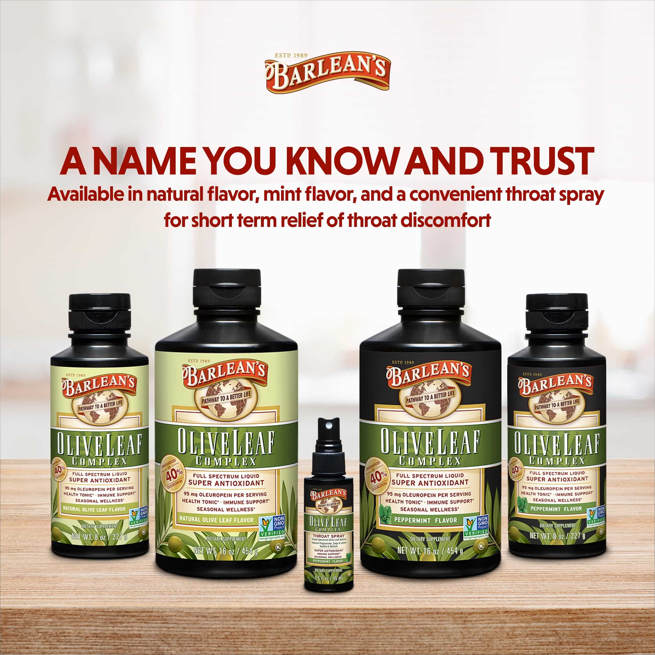Why Olive Leaf? Medicinal use of olive leaf powder dates back to ancient Egypt. Olive leaf complex is now used throughout the world for its plentiful health benefits. Olive leaf immune boosters contain Oleuropein and powerful Polyphenol antioxidants found within this potent leaf. The leaves we use in Barlean’s Olive Leaf Complex are sourced from the Andalusian regions of Spain. These healthy leaves are teeming with oleuropein, as well as a wide range of polyphenols and nutrients. Barlean?s Olive Leaf Complex comes in a full spectrum liquid with a robust flavor, a cleansing throat spray, or mini softgel pill for convenience. So if you’re looking for an immune support supplement that can work wonders for your body?s defense system, then look no further than Barlean’s Olive Leaf! Olive leaf is a powerhouse ingredient that helps boost a healthy immune system. With its high concentration of oleuropein and other polyphenols, it helps to support the overall health of your body. Barlean’s complex is formulated with 40% standardized oleuropein making it higher strength then your average olive leaf extract for an ideal herbal detox cleanse.
