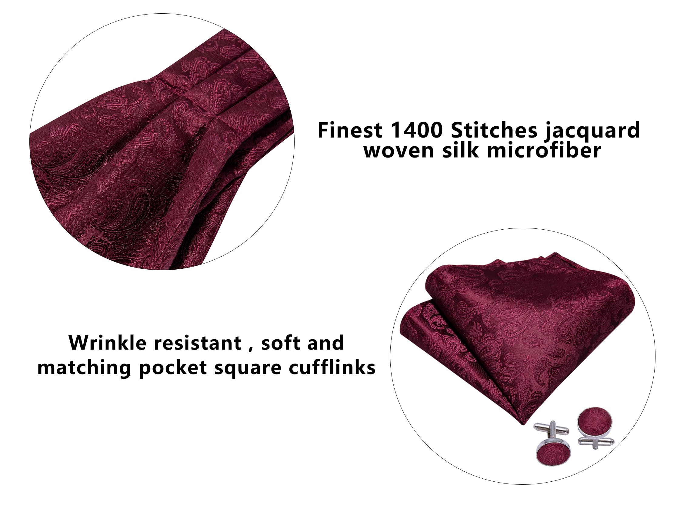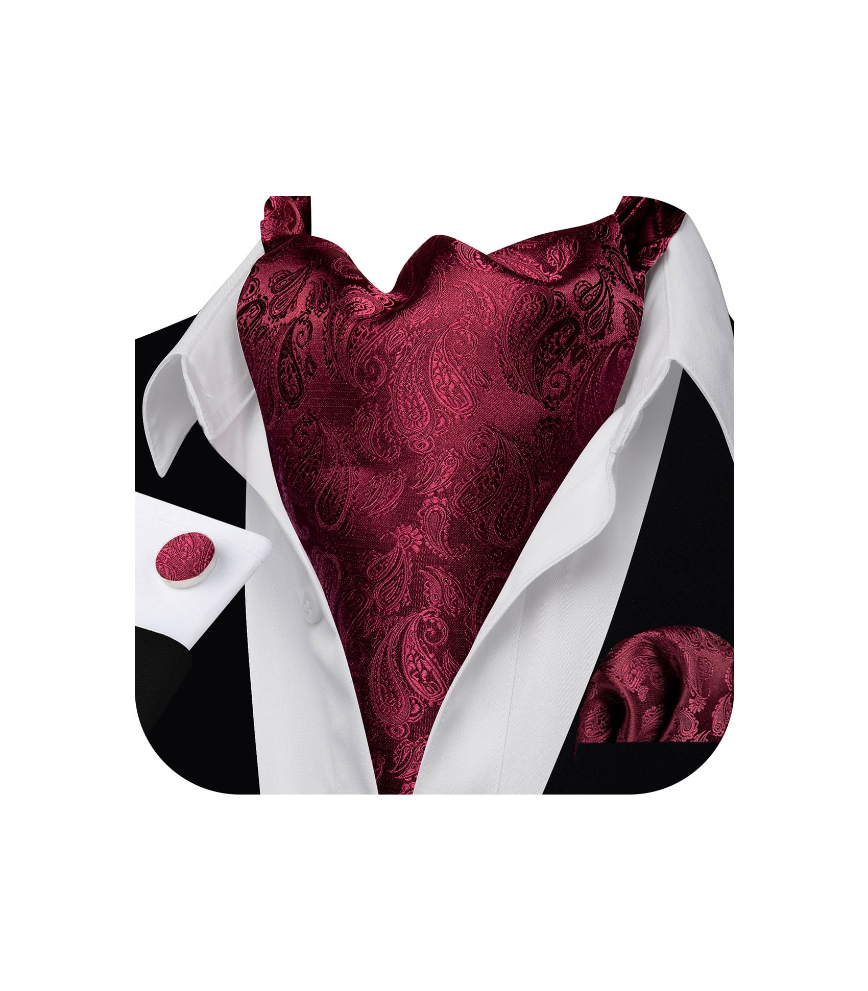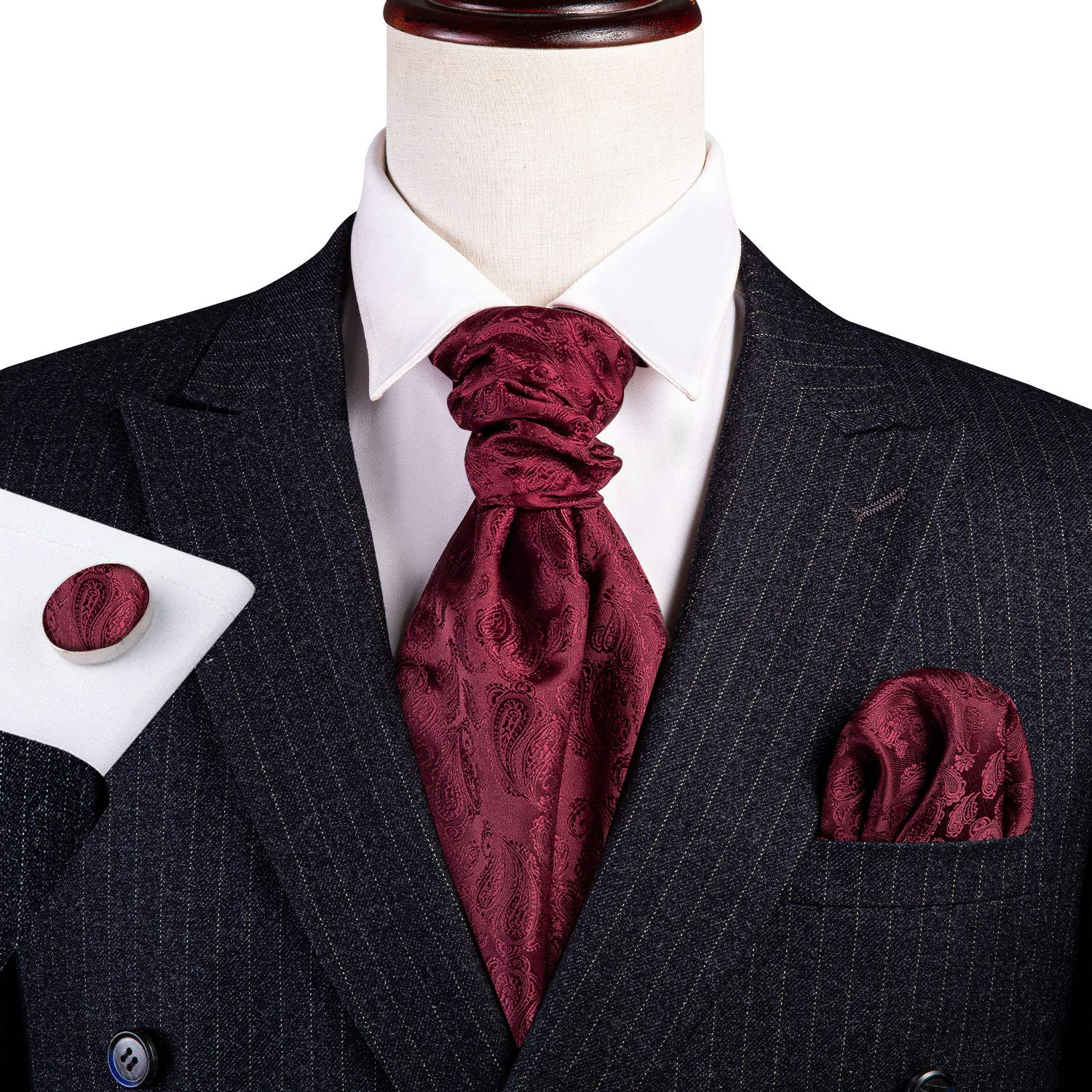 Original price was: ₹2,992.₹2,216Current price is: ₹2,216.Barry.Wang Men Ascot Tie Set Cravat Tie Paisley Burgundy Silk Scarf Self Tie Necktie Handk