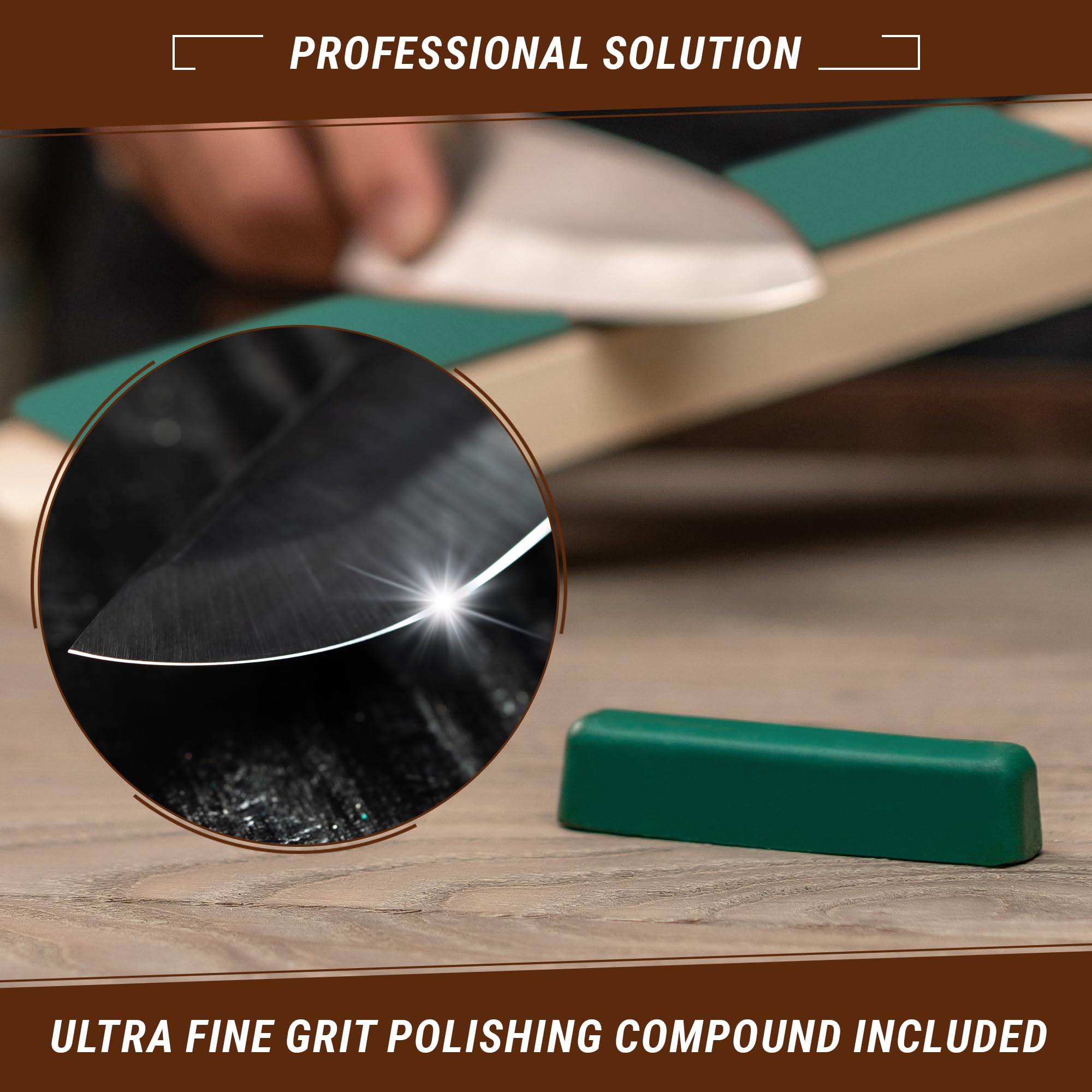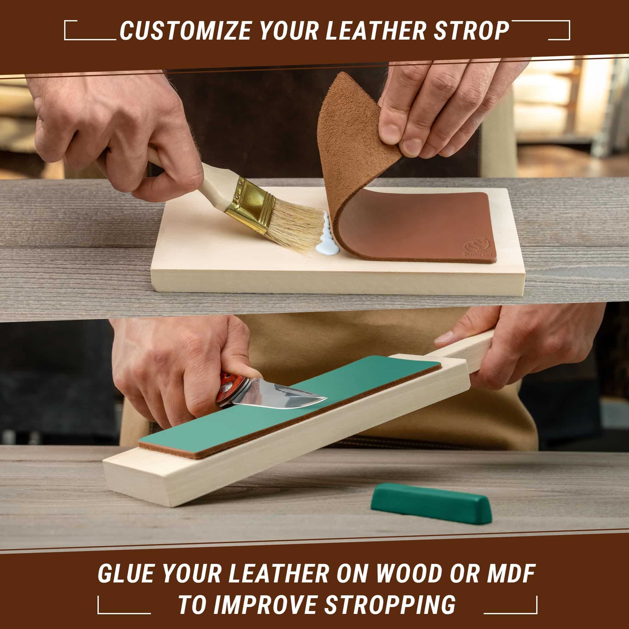 - Stropping Leather Compound: comes with this stropping kit and allows you to make your tools and knives razor-sharp with minimum effort. Applicable to the smooth side, it will make the process much easier.
