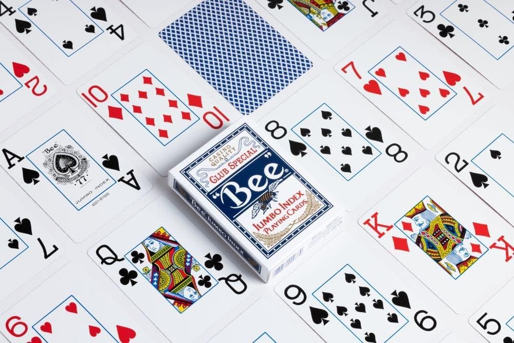Get our classic Bee playing cards with a Jumbo Index that will give you a clear read during the quick glances to your hand during a competitive game. The Jumbo Index is great for children?s card games as well, teaching them the suits, numbers and letters. Classic ?Bee? design with a Jumbo Index for an easy read. Big and bold is the name of this game.