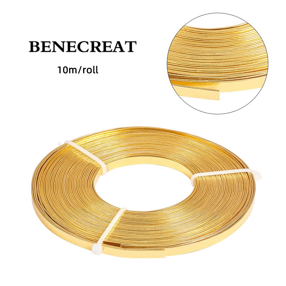 BENECREAT 32 Feet 18 Gauge Flat Jewelry Wire Aluminum Wire Color Reference Gold Silver Size Reference 3mm wide 5mm wide Features Long lasting in color Easy to bend, not flake off Great for jewelry making, gem stone wrapping, garderning and more