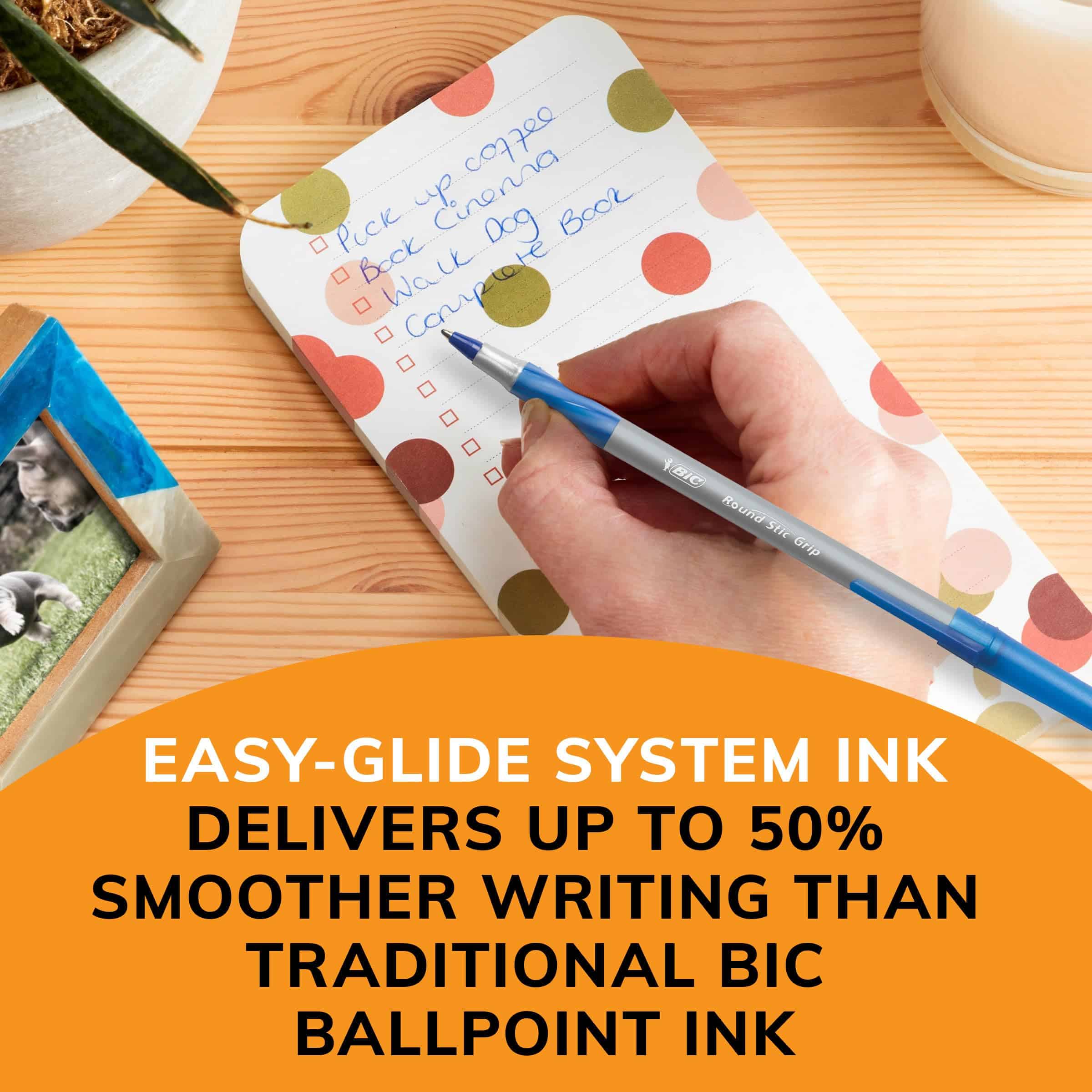 - BIC pens with the proprietary Easy-Glide System Ink spread the blue ink smoothly and evenly, providing consistent ink flow