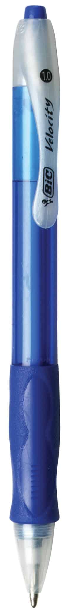 - One 12-count pack of BIC Velocity Retractable Blue Pens