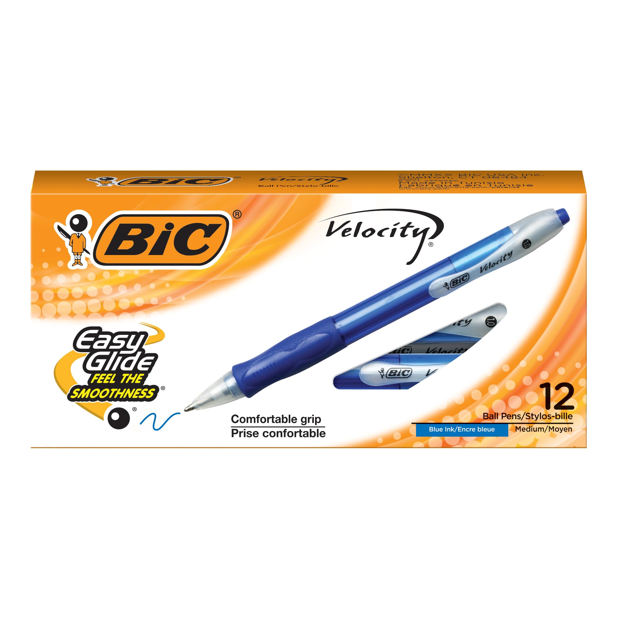The trusted original with a classic look and feel, BIC Velocity Retractable Ball Pens offer fluid, effortless writing for everyday writing tasks. From the #1 Ball Pen Brand in America*, the BIC Velocity retractable ballpoint pen comes filled with ink that writes even smoother than BIC classic ink system. Each pen features a rubber grip that offers a comfortable hold, ideal for longer writing sessions, and a 1.0mm medium point that is versatile enough for a variety of writing activities. This blue pen?s smooth-click retractable design offers convenience, while the clip allows you to easily carry this pen where you need it. *Source: The NPD Group/Retail Tracking Service and Commercial Tracking Service, U.S., based on actual unit sales, 12ME June 2022 combined