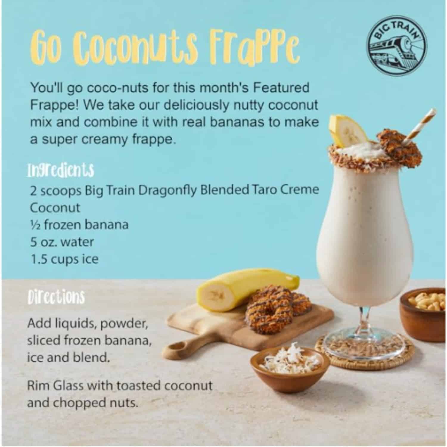 - Big Train Blended Cr?me: A sweet, coconut beverage you can mix up in an instant for a rich, creamy treat. Just add water! Drink hot, cold or blended with ice for a frozen frappe treat.