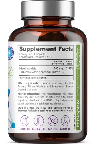 Original price was: ₹7,101.₹5,260Current price is: ₹5,260.biophix B-3 Nicotinamide 500 mg 180 Caps – Nicotinic Amide Niacin Natural Flush-Free Vitamin Formula – Supports Skin Cell Health